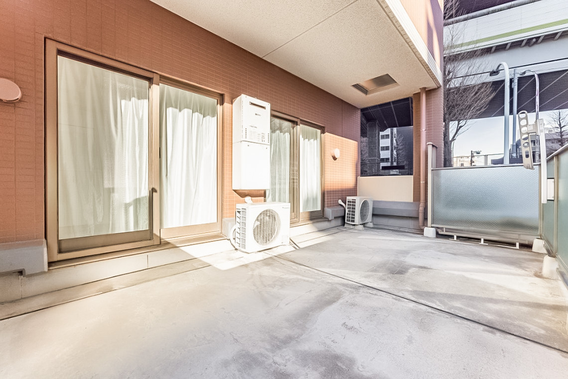 - マンションは傾斜地に建っているため、1階所在の住戸ですがルーフバルコニーが備わっていますよ。角住戸で窓が多く、風通しがよさそうです。