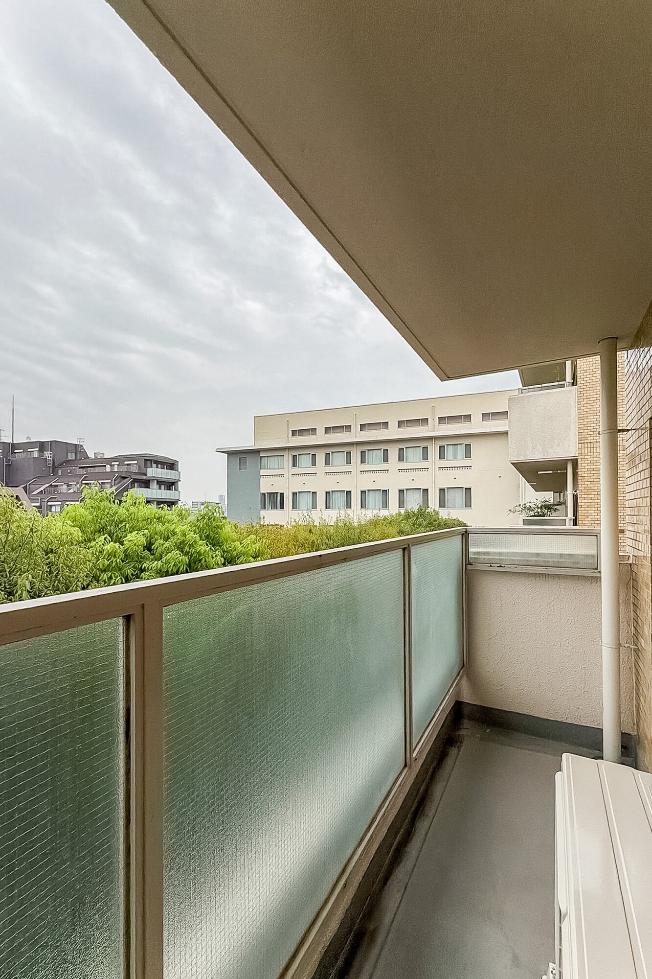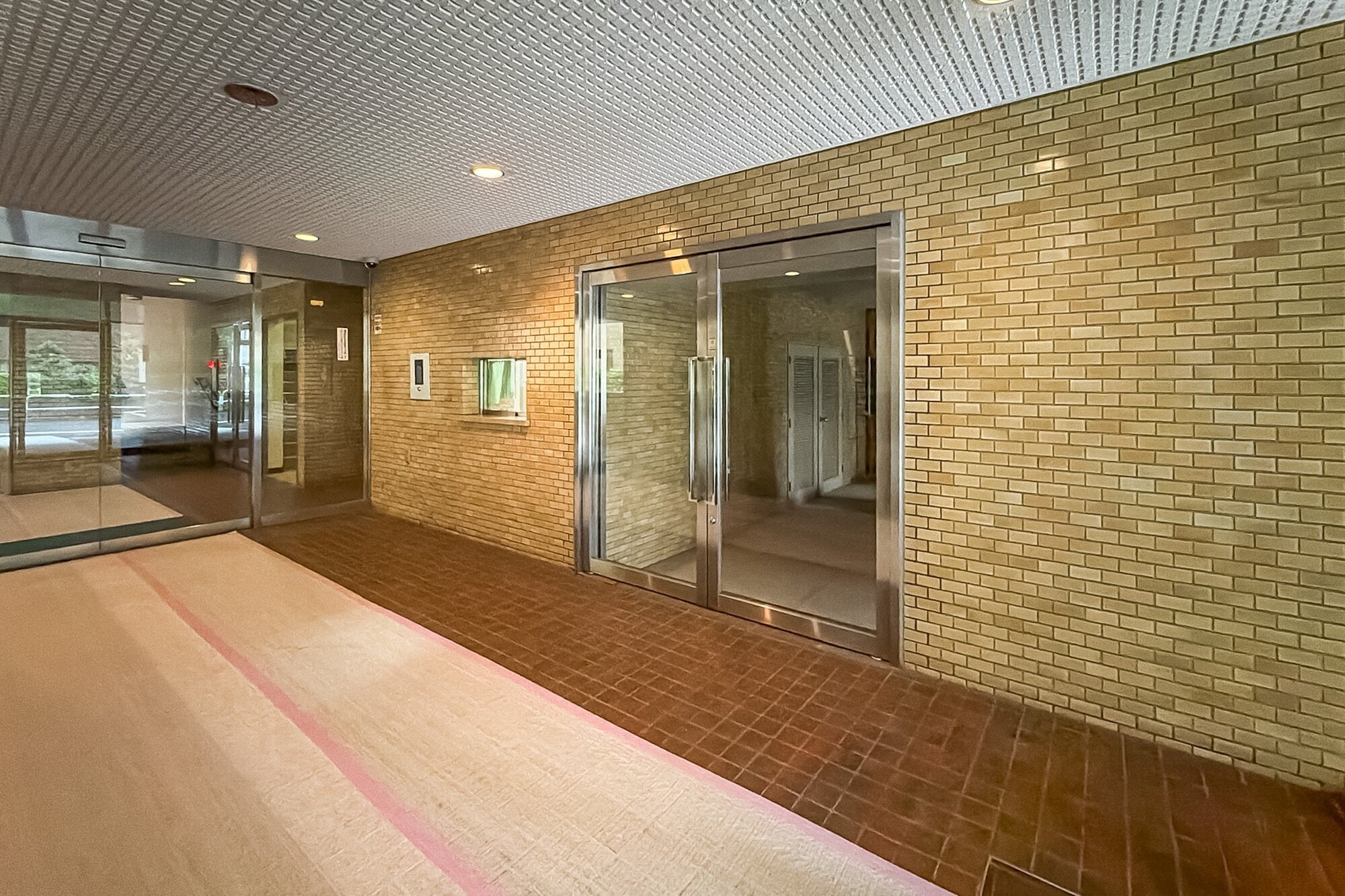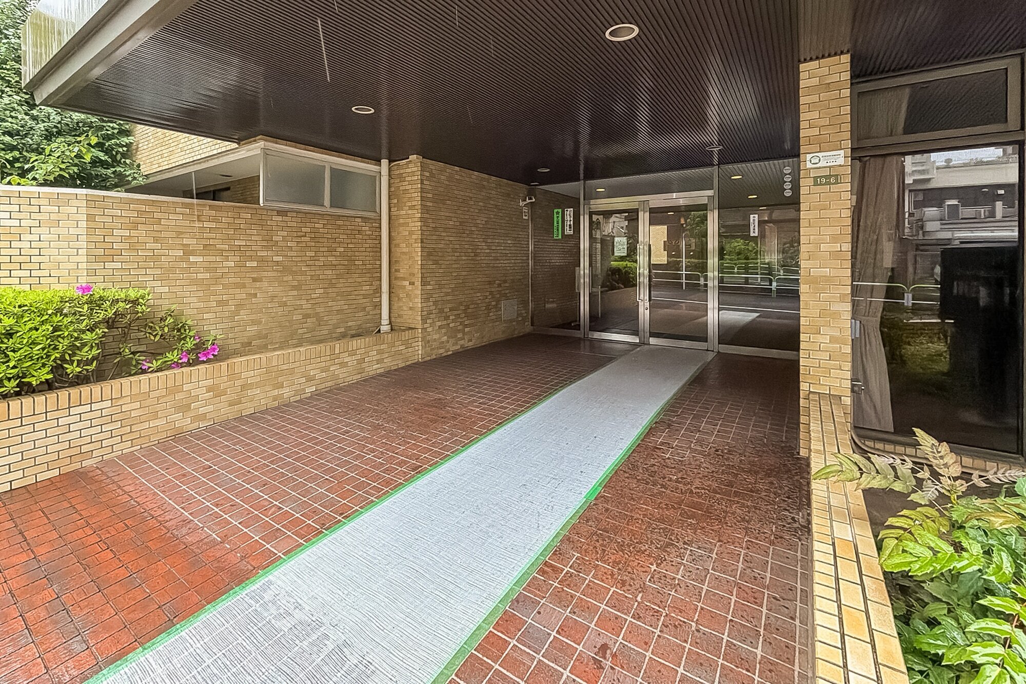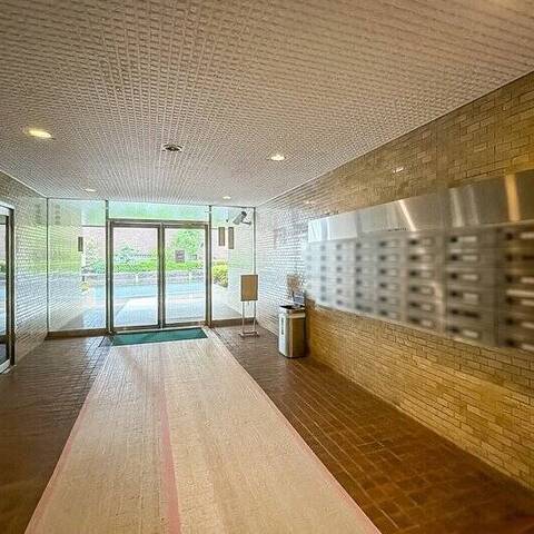 - 1980年竣工の建物ですが、2009年に耐震改修工事を実施し、耐震基準に適合しています。植栽が出迎えてくれるエントランスは庇(ひさし)が深く、雨の日も出入りがしやすそう。エントランスホールにはオートロックが備わっていますよ。共益費は一般的な相場と比べお高めに設定されています。