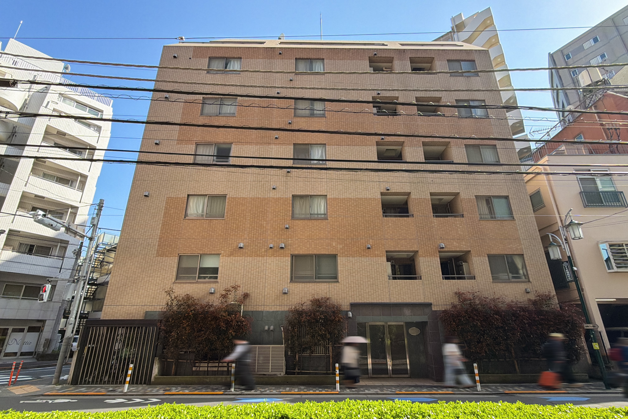 - 2003年竣工、街に馴染むオレンジベージュのタイル貼りの建物。オートロックと宅配ボックスはもちろん完備しており、細則に基づいてペットの飼育も可能です。総戸数は16戸と小規模で、共益費は一般的な相場と比べお高めに設定されています。