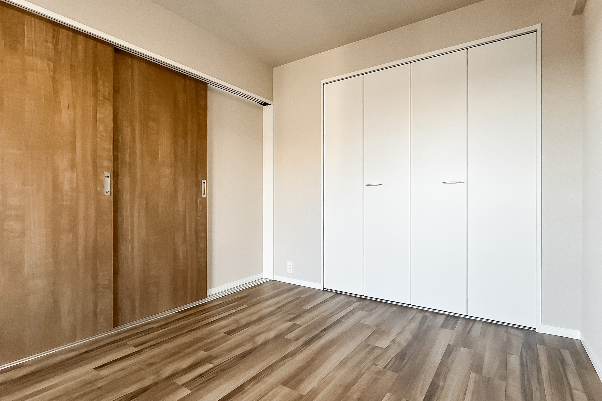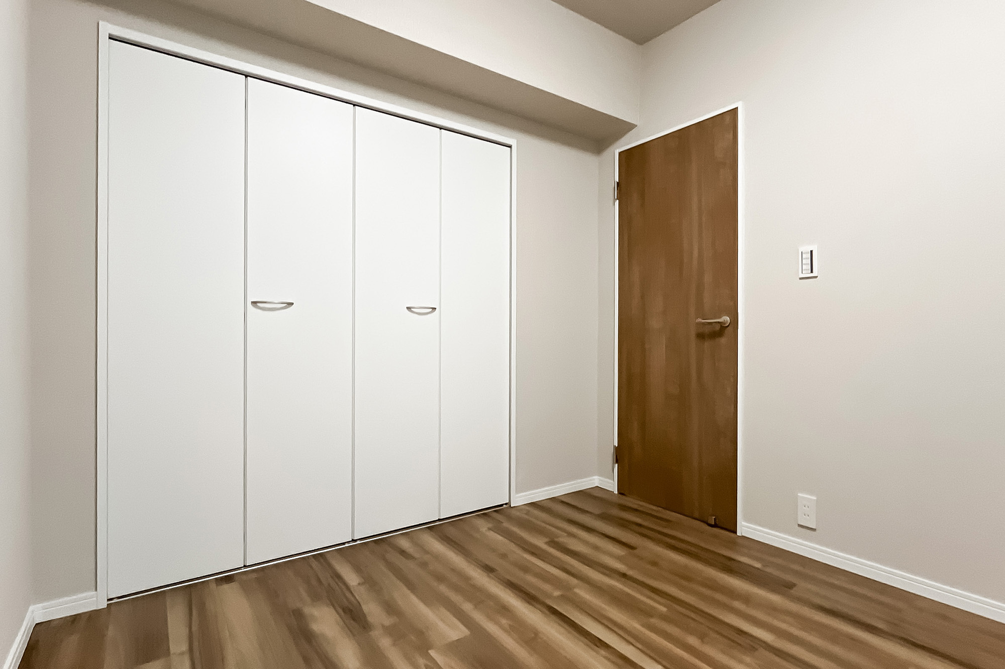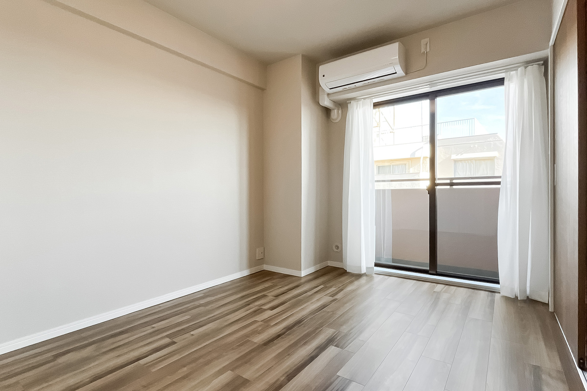 - 5階に所在する住戸。専有面積約55㎡を2LDKにした間取りです。お部屋数が足りていれば、約5.8帖の洋室の引き戸を開放し、1LDKのようにお使いいただくのもおすすめです。