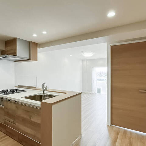 - ご紹介する住戸は6階に所在し、バルコニーからの眺望は抜けていますよ。南西向きで日当たりも◎ 専有面積約60㎡を2LDKにした間取りで、キッチン横にパントリーが備わっているのが心強いですね♪