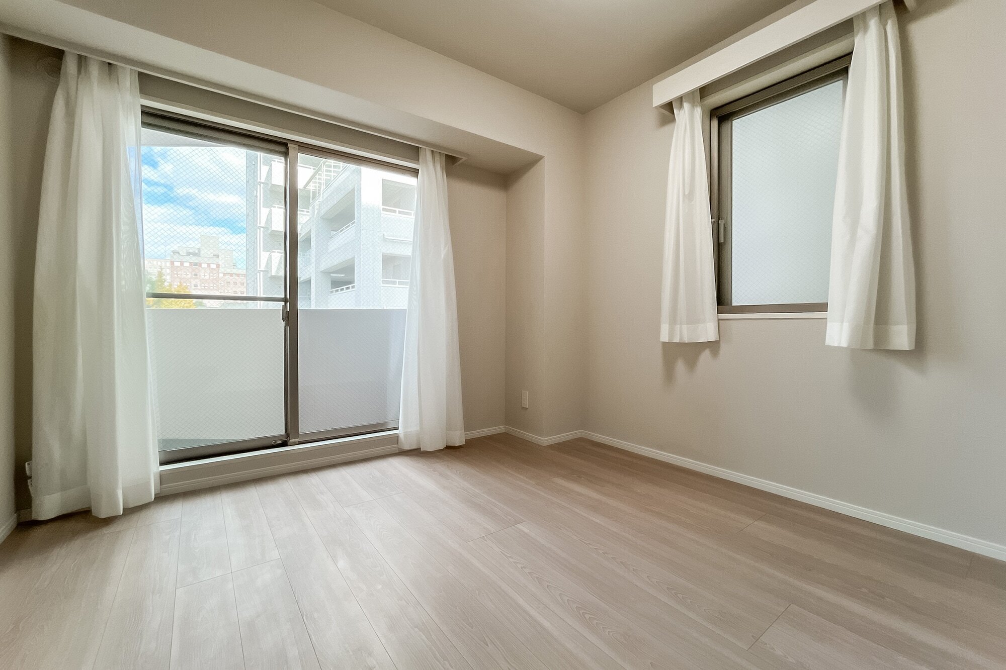 - ご紹介するのは5階に所在する住戸です。専有面積約68㎡を2LDKにした、ゆとりのある間取りが◎ 各居室にバルコニーが備わった角部屋で、風が気持ちよく通り抜けてくれそうですね。
