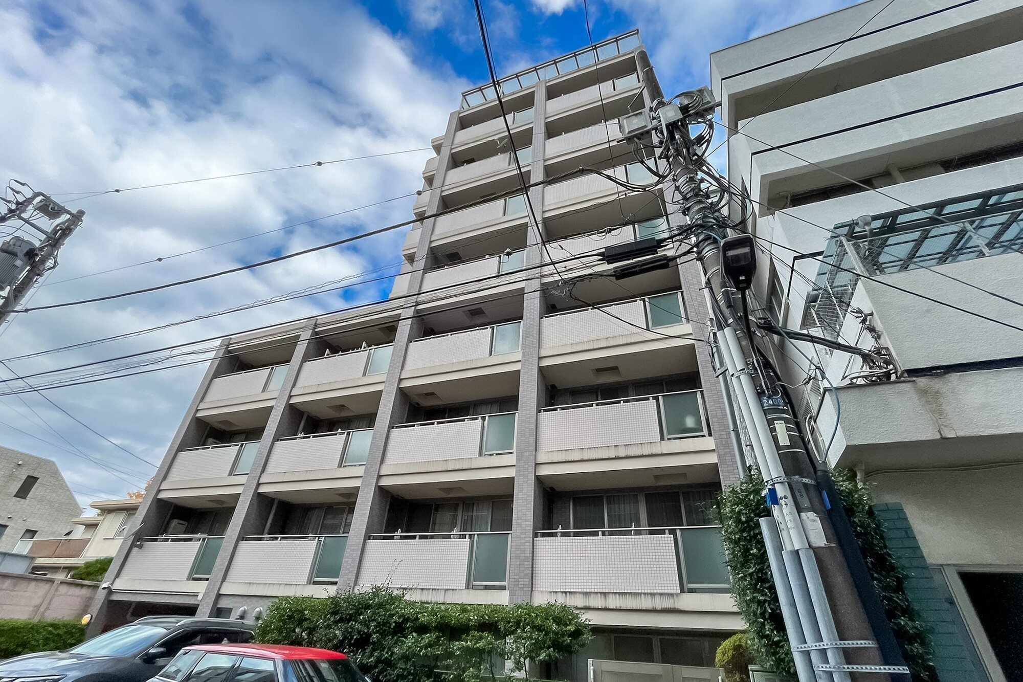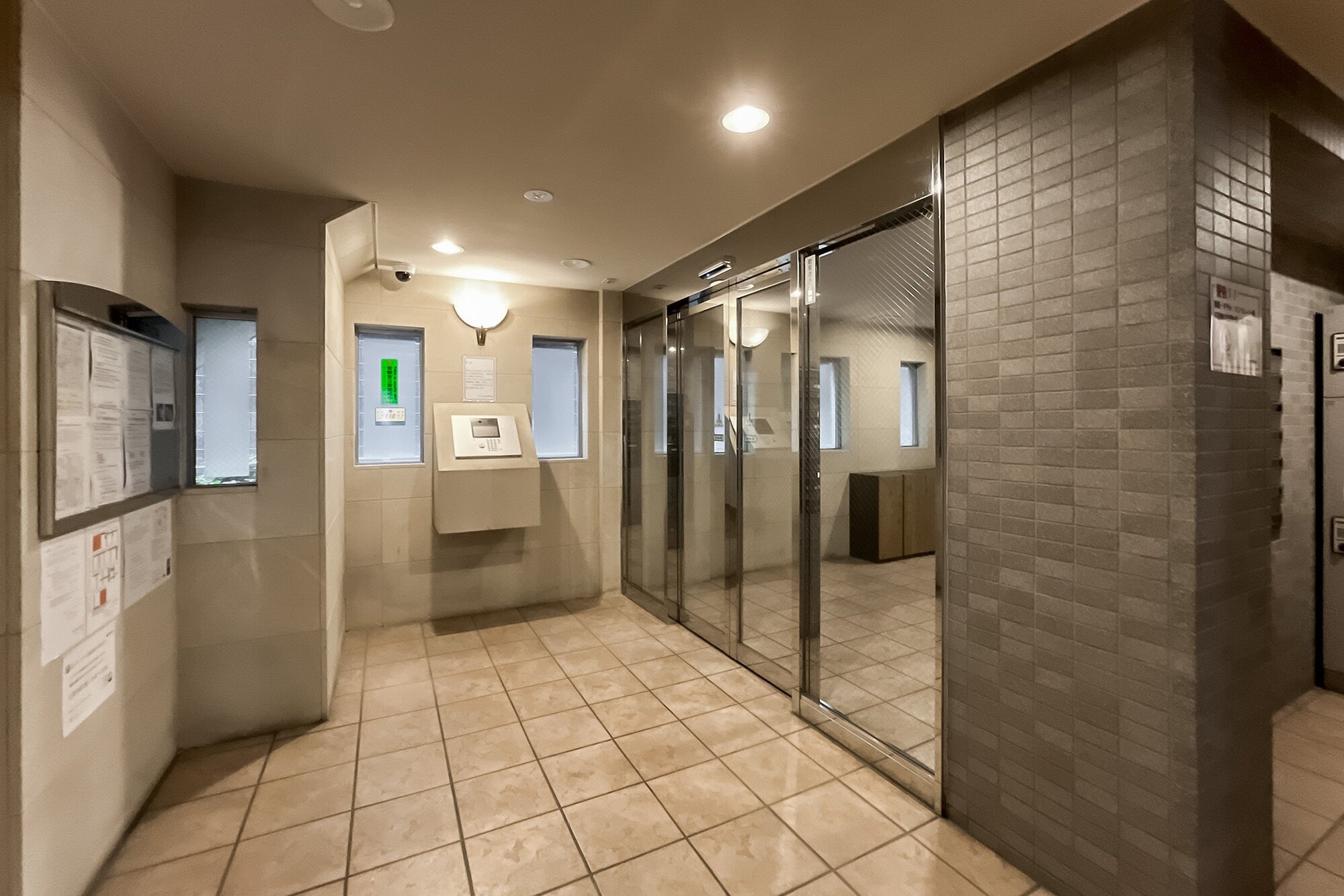 - 2000年竣工のまだまだお若い建物。共用部にはもちろんオートロックと宅配ボックスを完備していますよ。総戸数は24戸と小規模で、共益費は一般的な相場と比べお高めに設定されています。