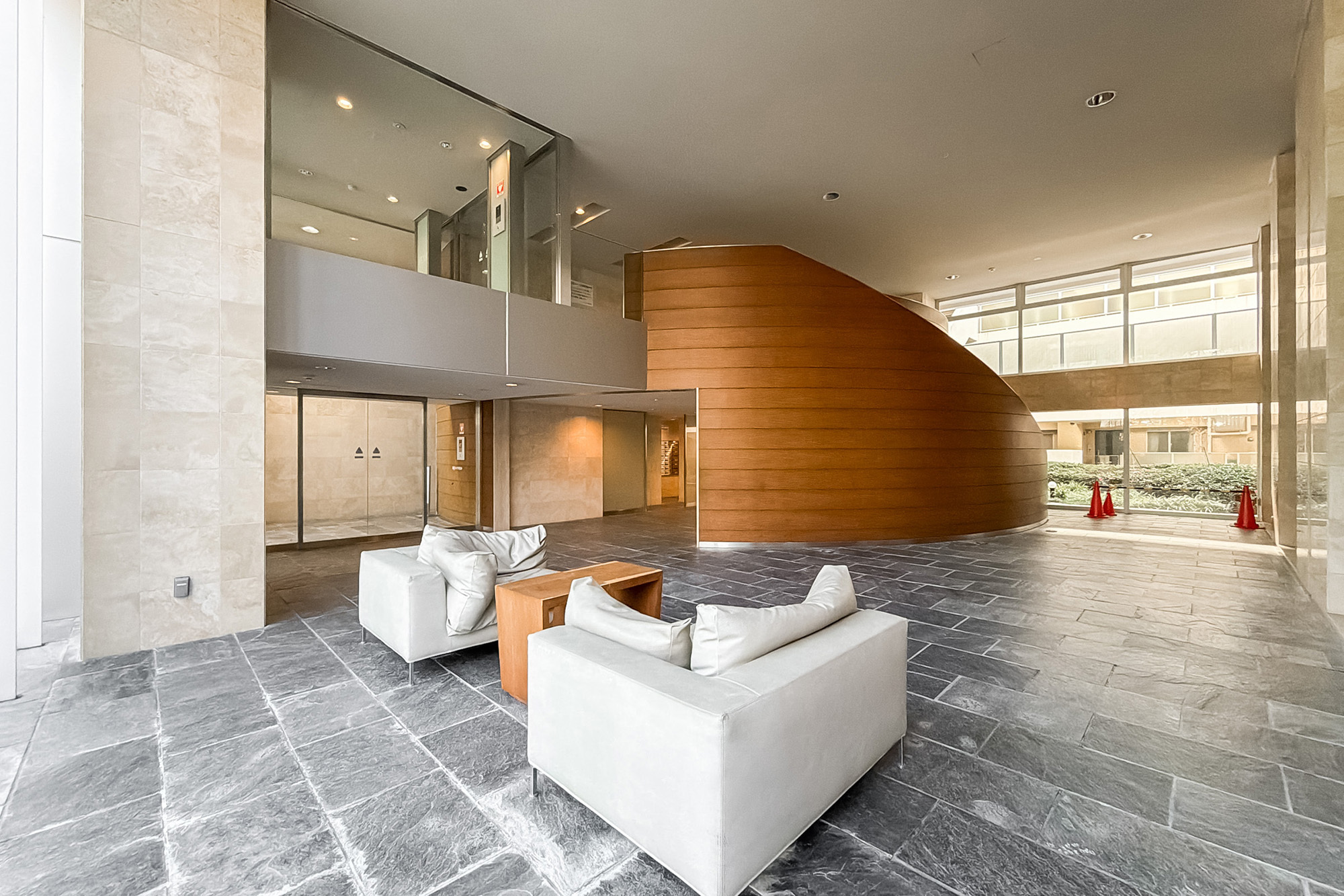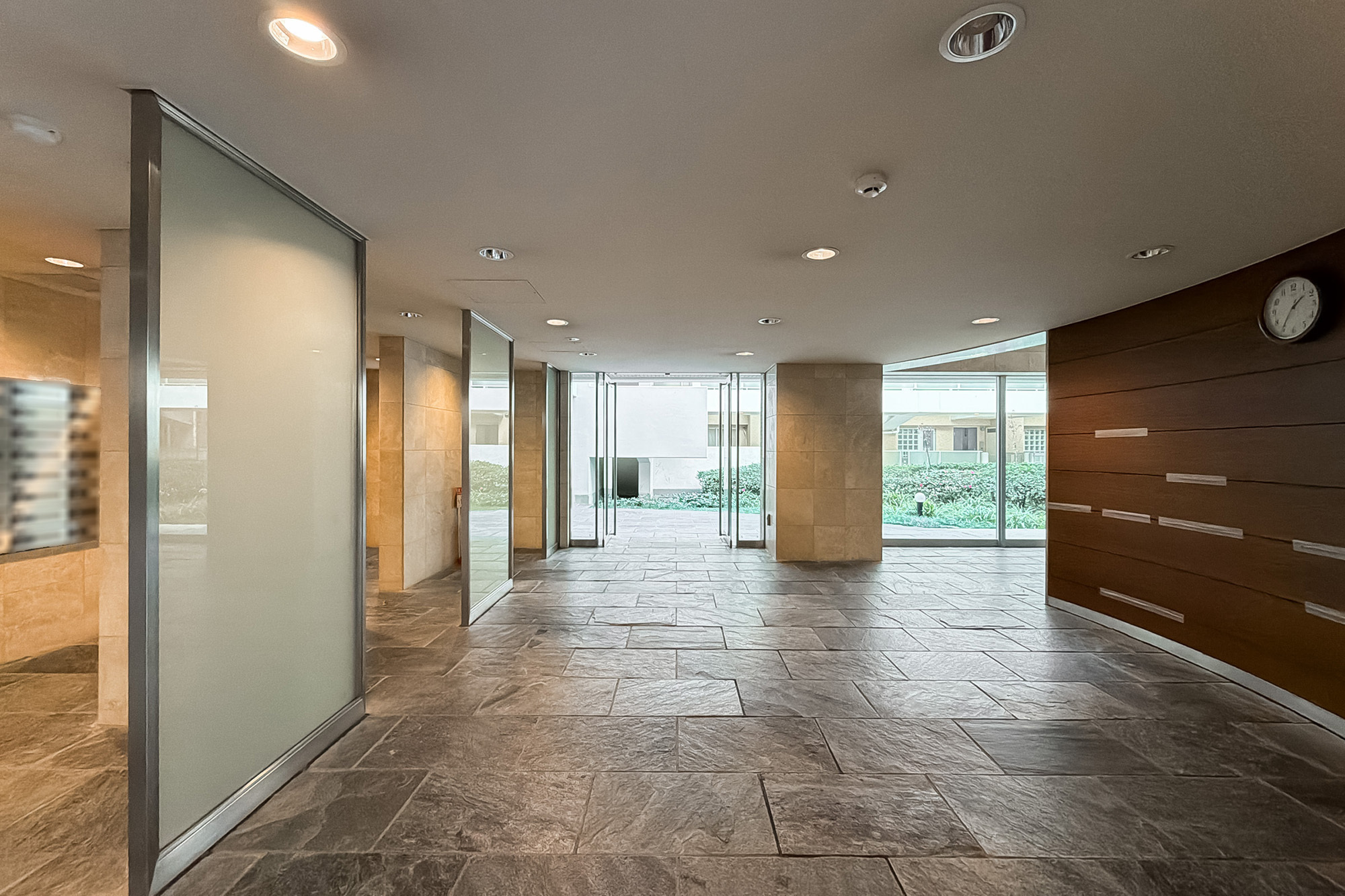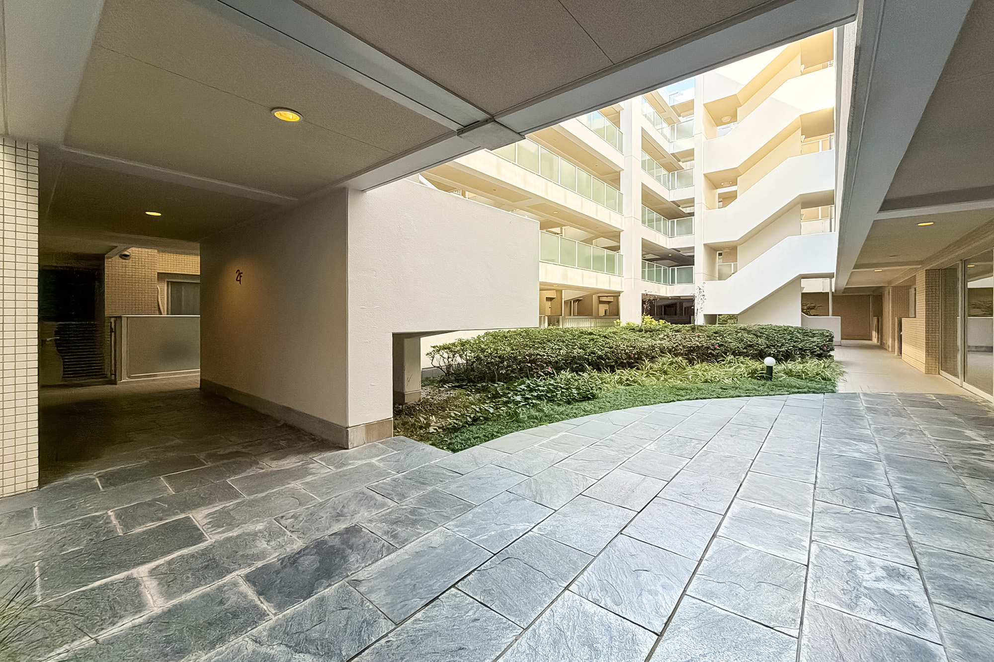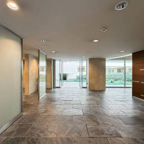 - 車寄せのあるエントランスや吹抜けが心地よいロビーなど、ゆとりのある設計が魅力の2002年竣工の建物。総戸数は165戸と大規模です。