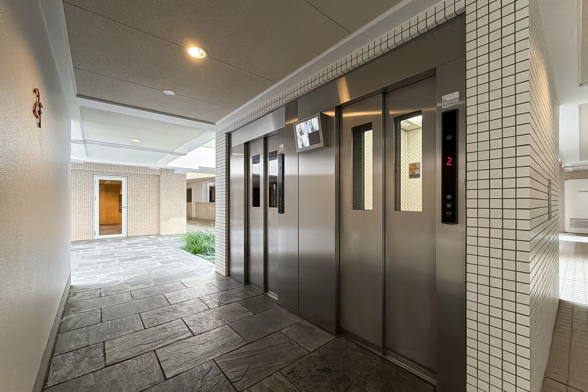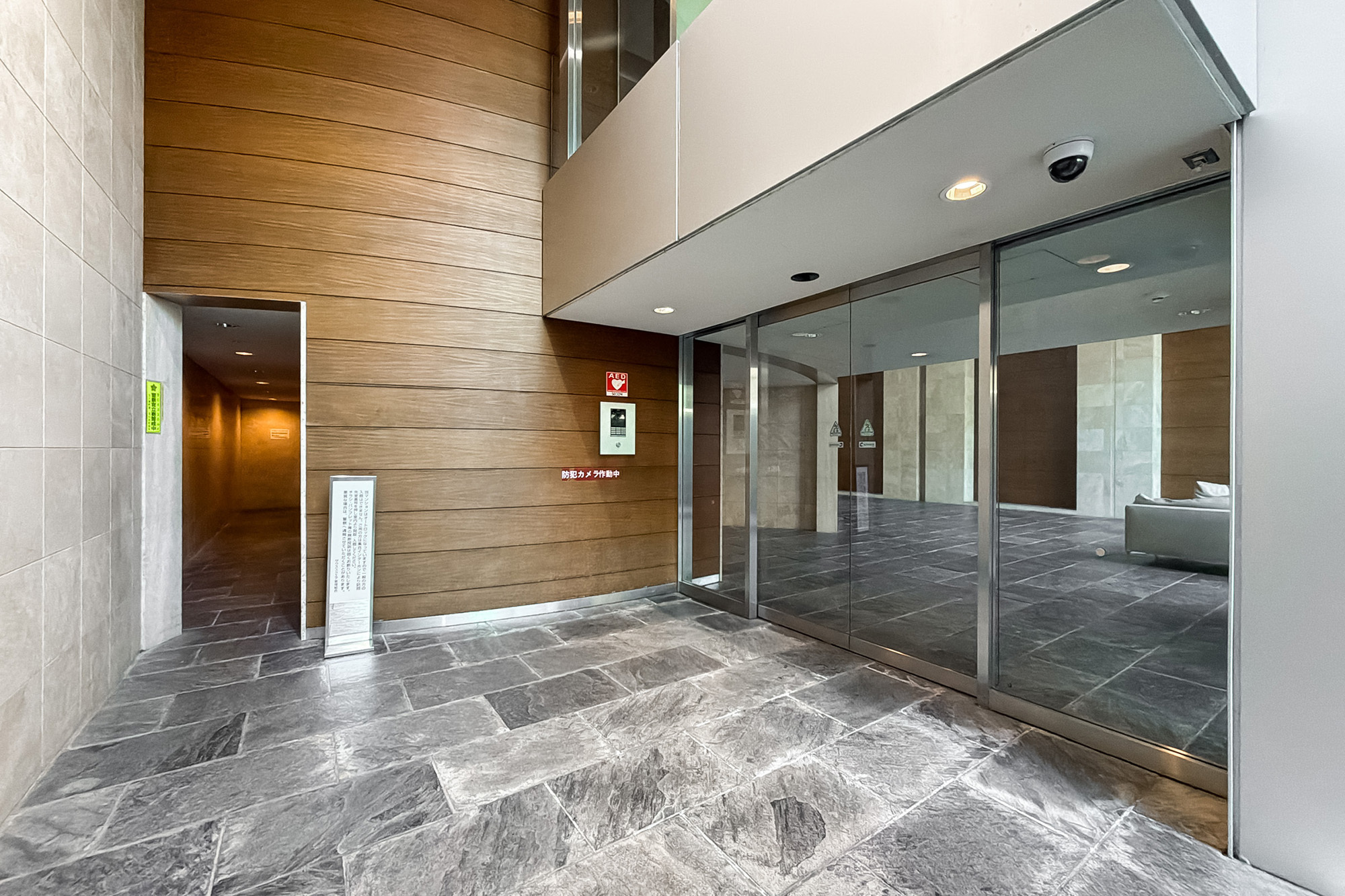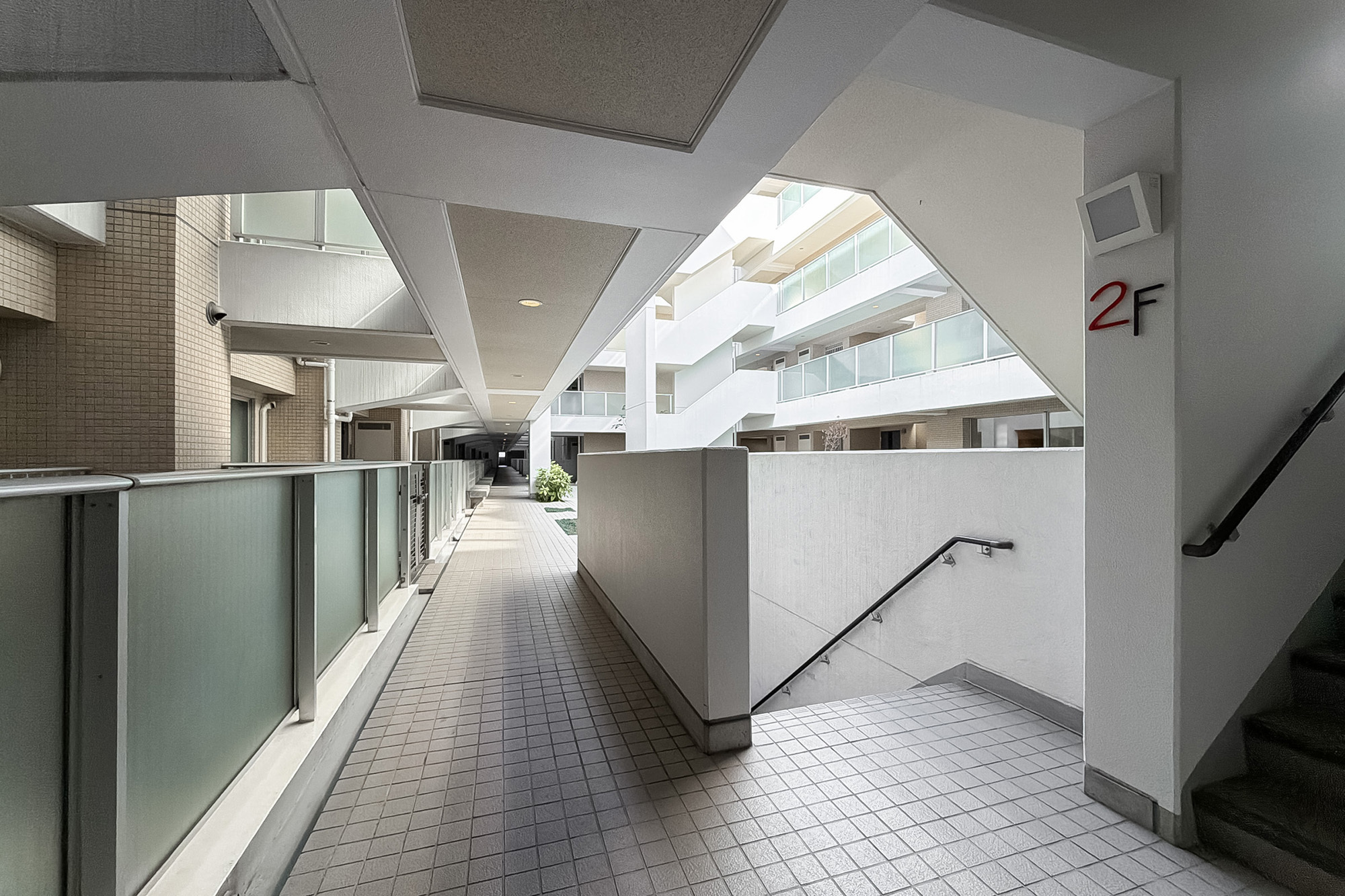 - 車寄せのあるエントランスや吹抜けが心地よいロビーなど、ゆとりのある設計が魅力の2002年竣工の建物。総戸数は165戸と大規模です。