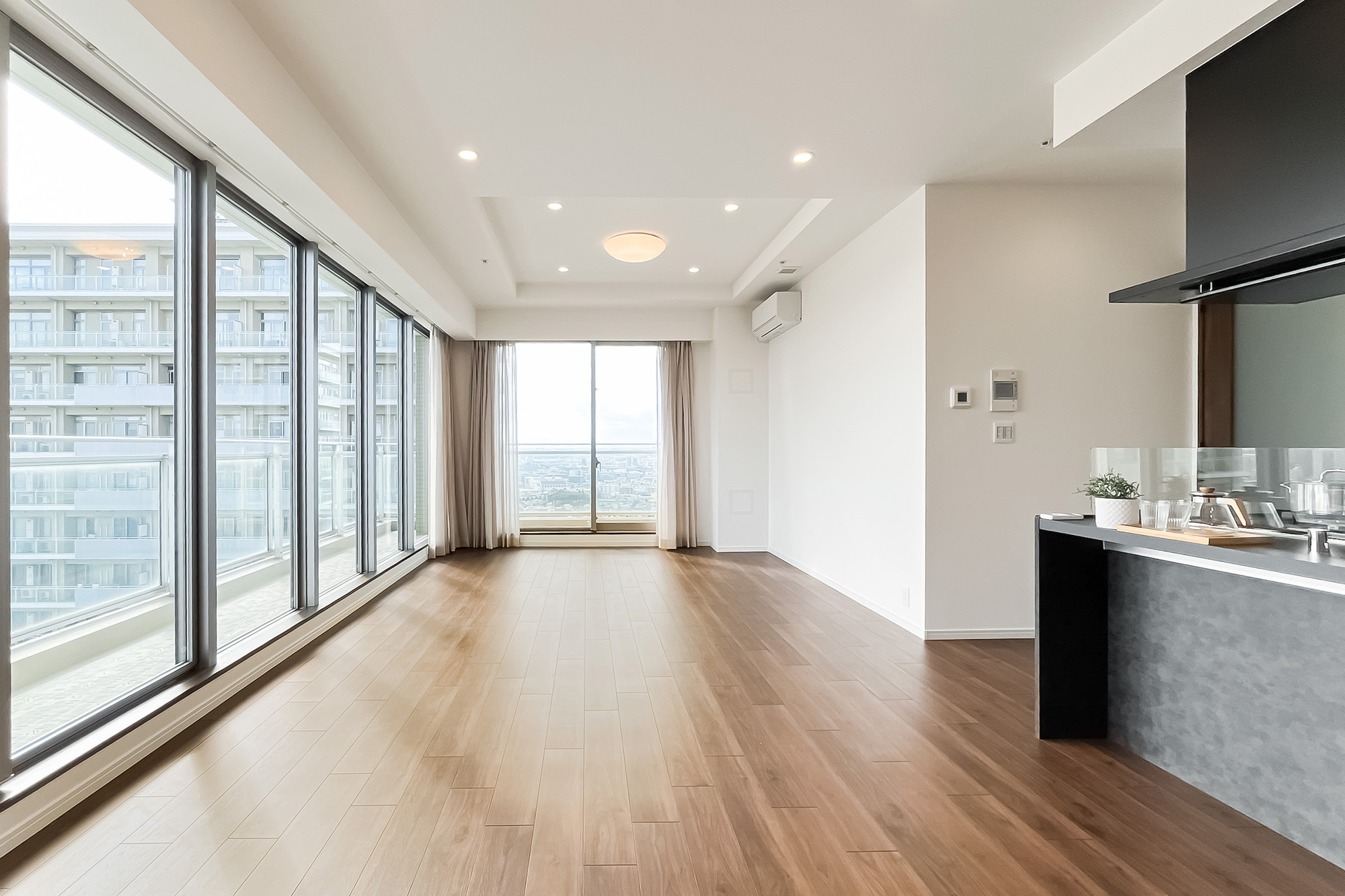 - ご紹介するのは、25階に所在する南西角住戸。バルコニー南側からの開放感ある眺望は必見です!
