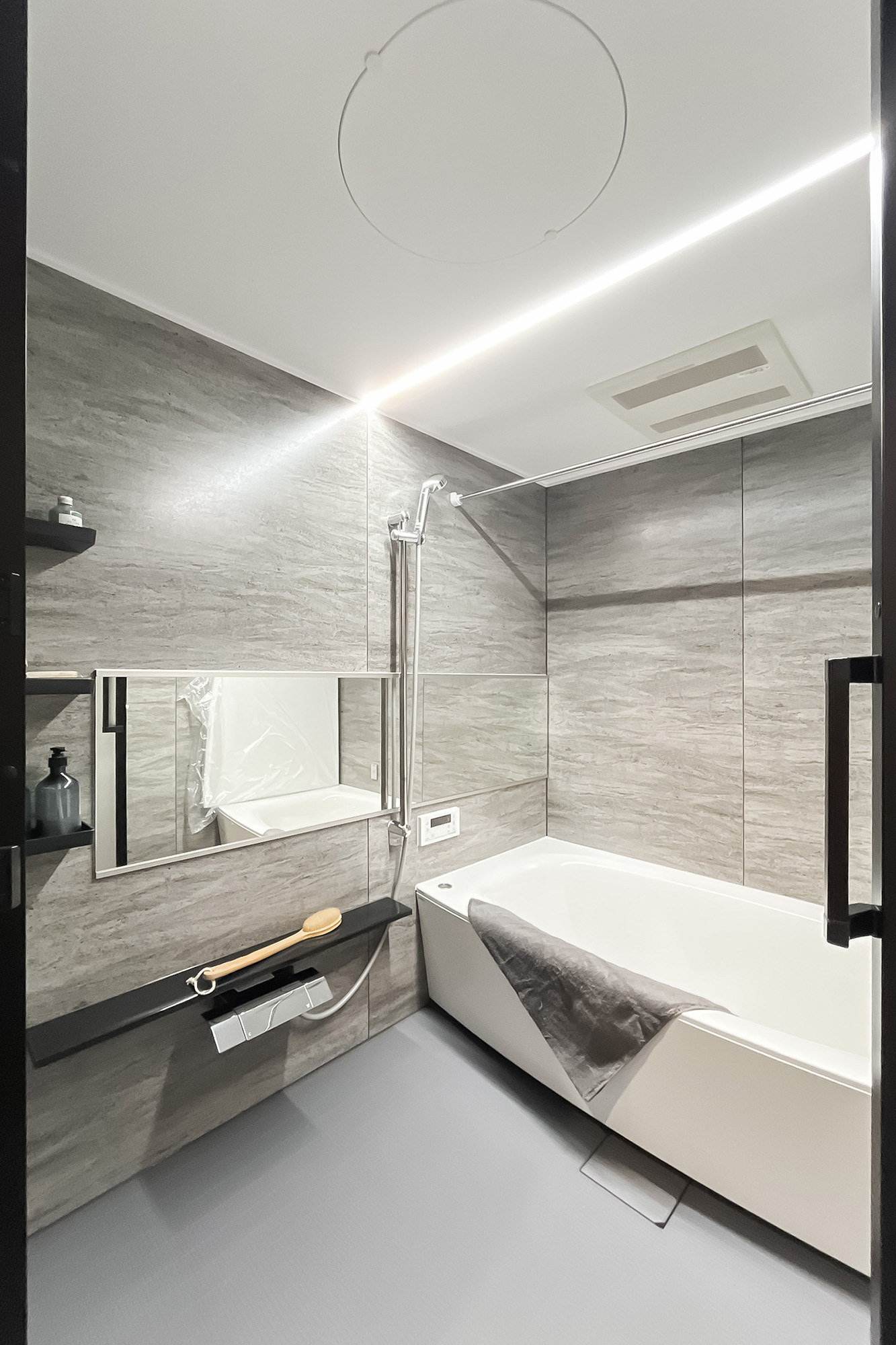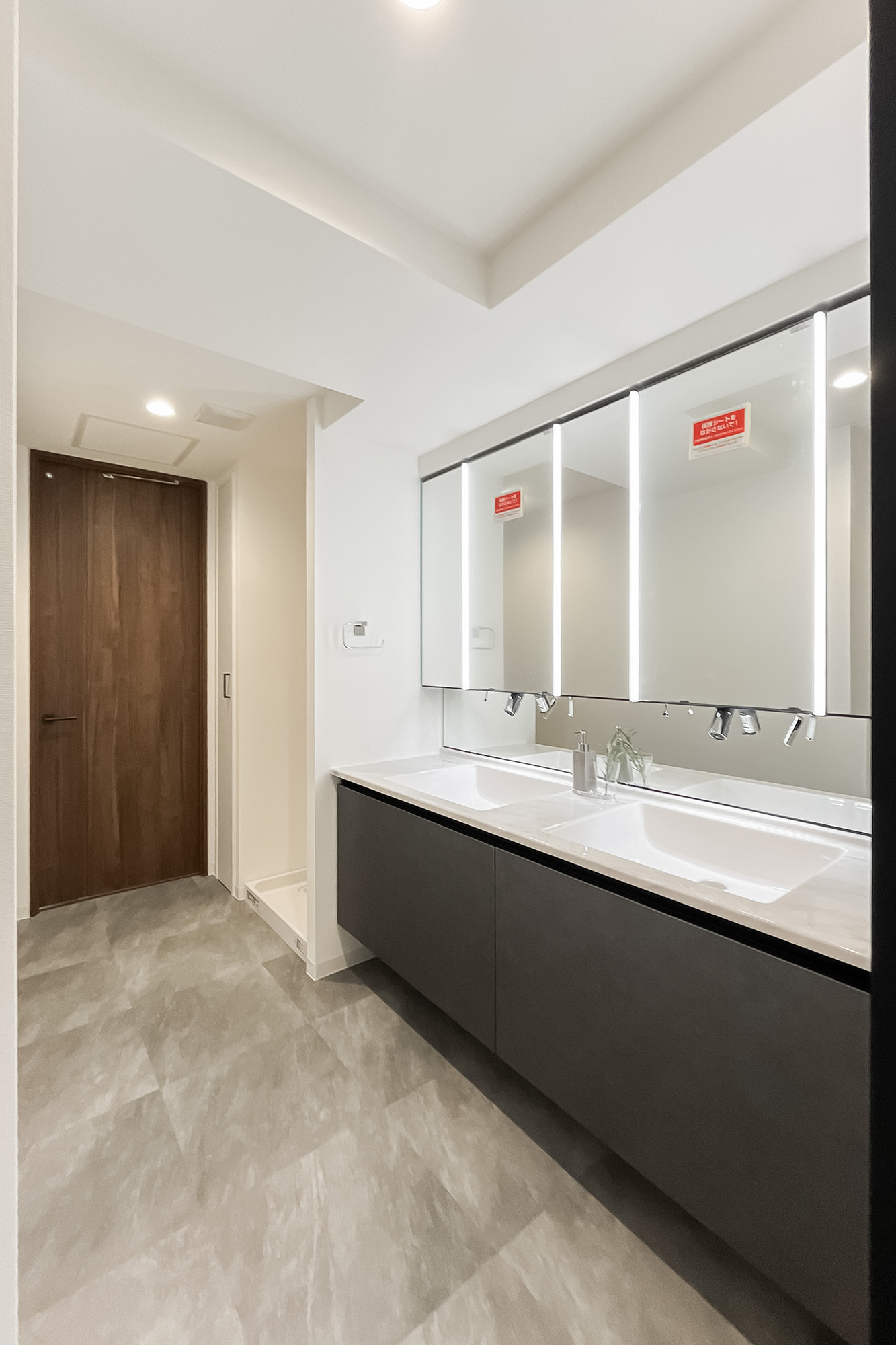 - LDKは約22.9帖、メインベッドルームは約8.1帖の広さ。LDKは二面採光で日当たりがよさそうです◎ さらに2ボウルの洗面室、1620サイズの浴室と、各種ゆとりのあるつくりが魅力的ですね。
