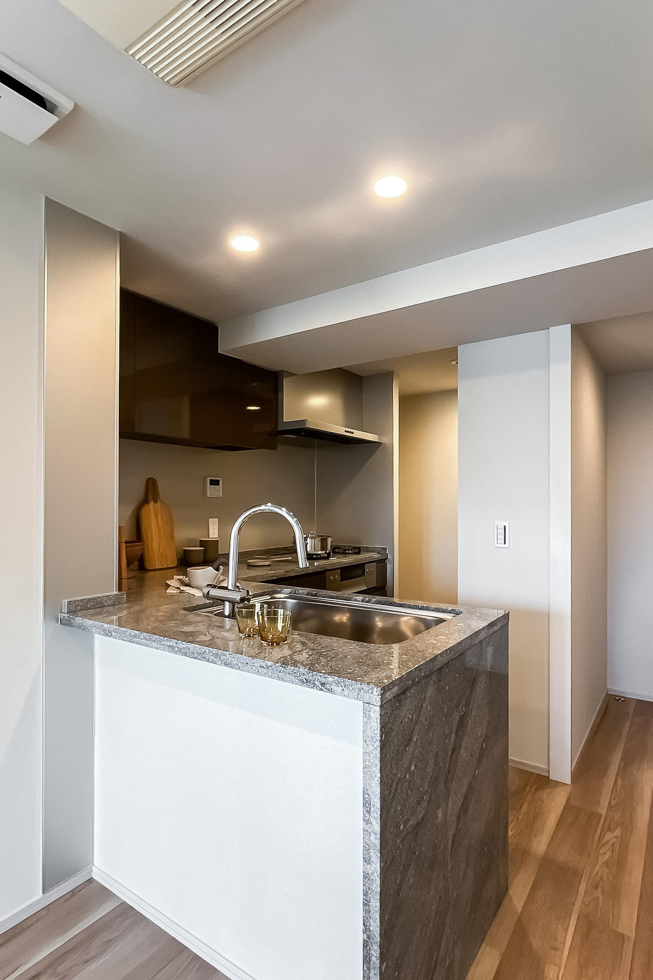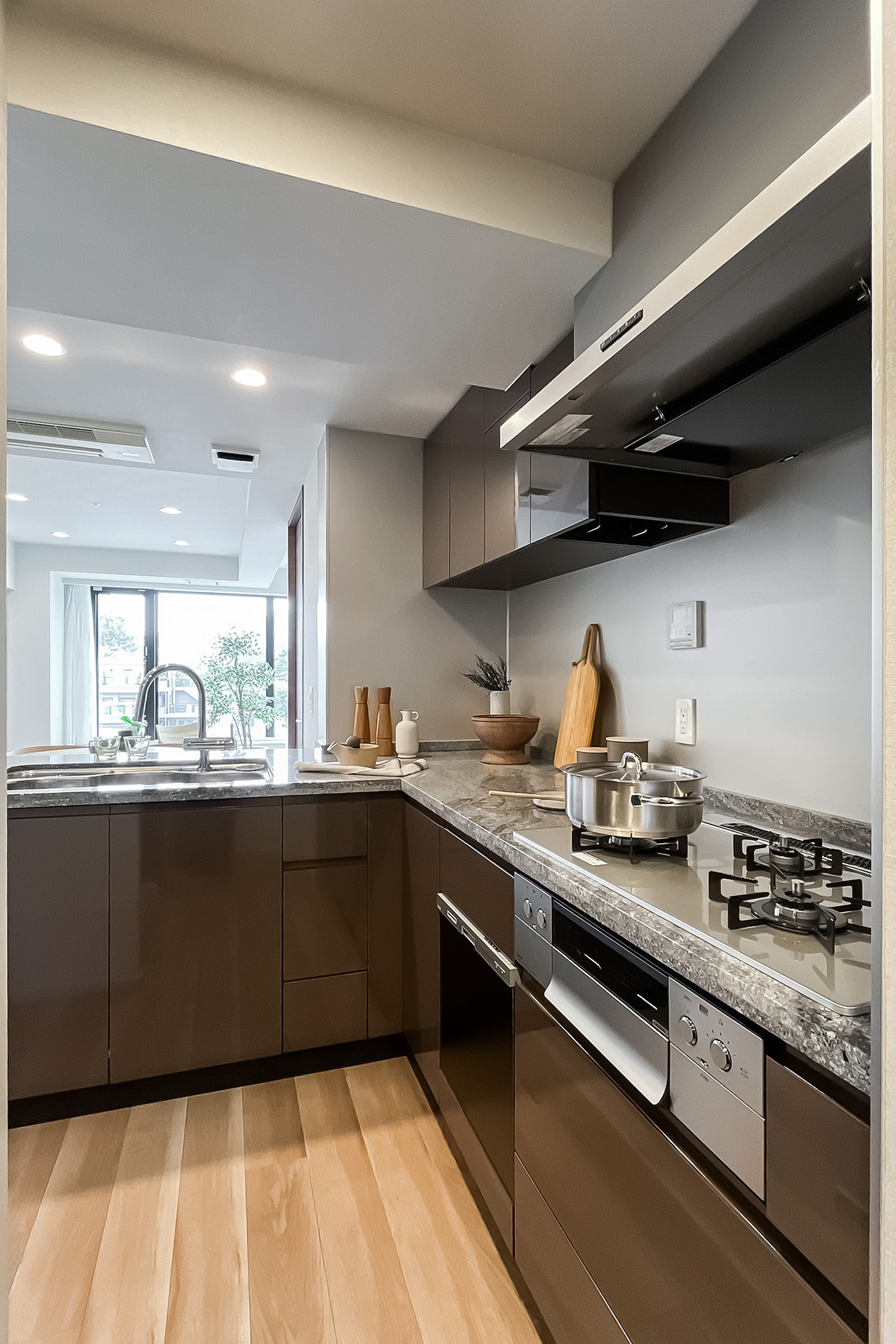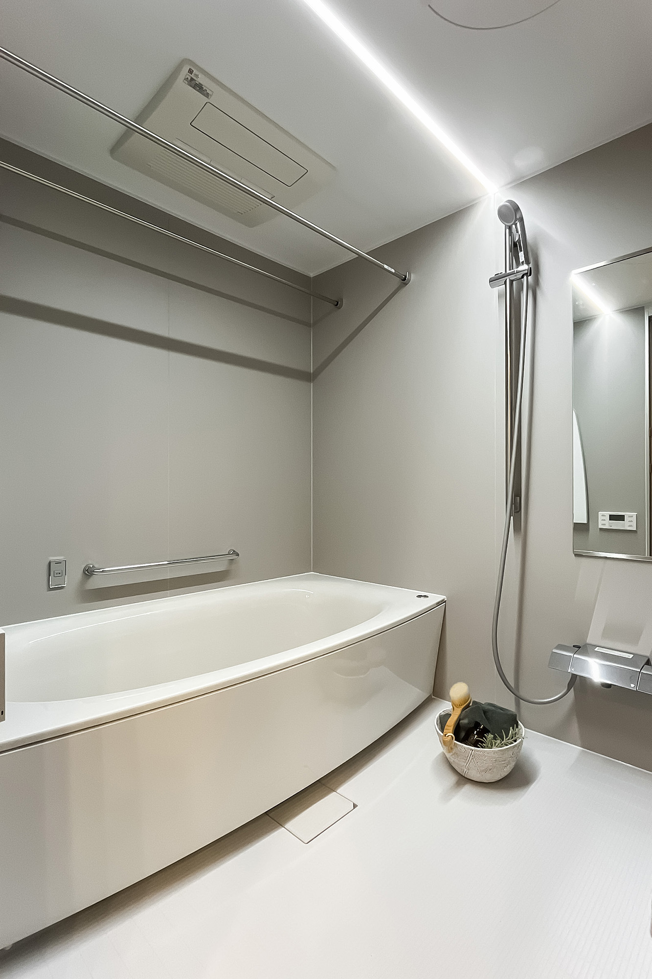 リノベーション内容:ガスコンロ/浄水器付シャワー水栓/食器洗浄機/ディスポーザー/洗濯パン・水栓交換/ユニットバス交換/浴室暖房換気乾燥機交換/洗浄機能付トイレ交換/水まわり床(洗面・トイレ)(フロアタイル)交換/壁クロス(全室)張替 他