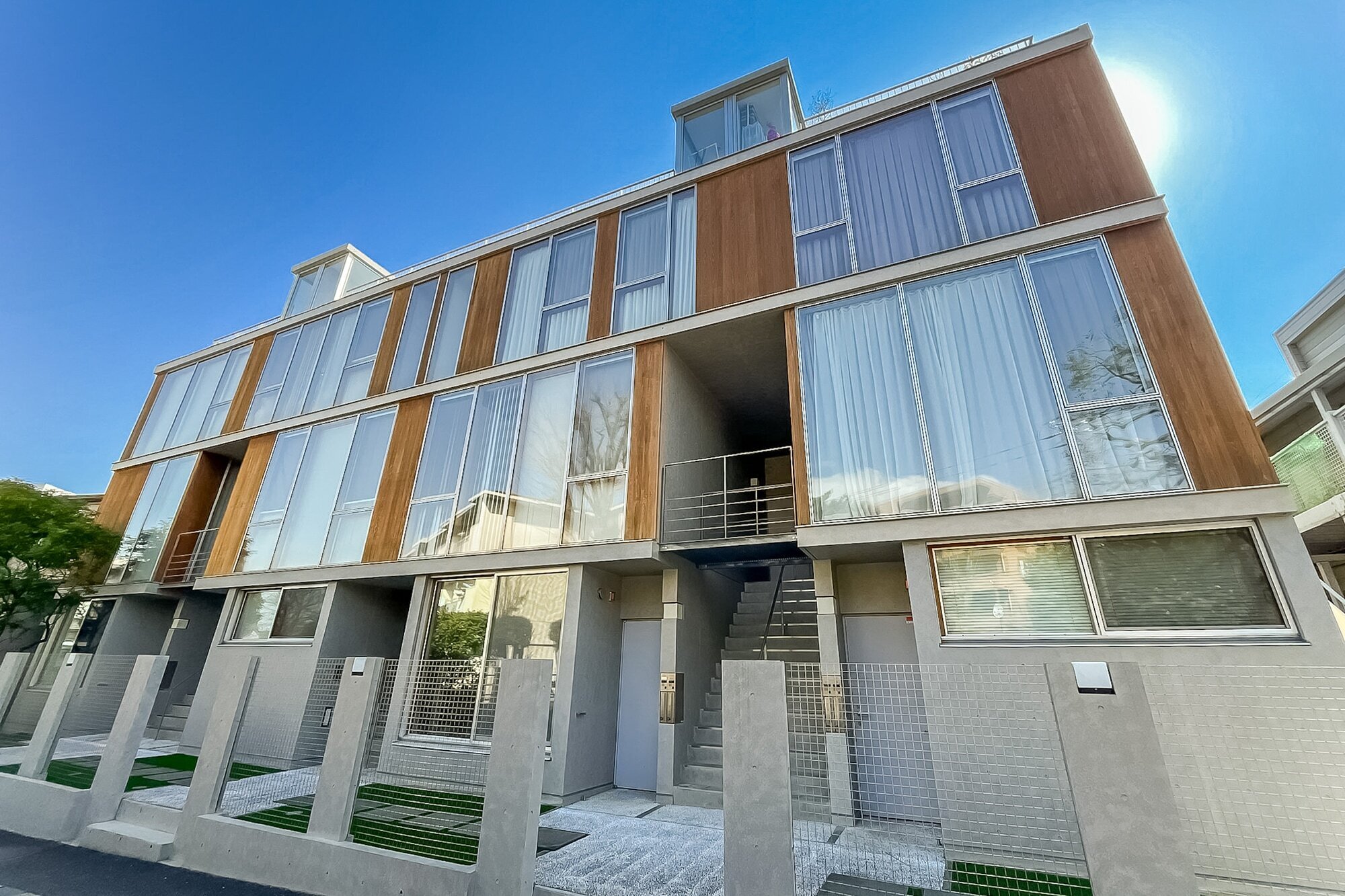 - “ガラス×ウッド×コンクリート” が織りなすスタイリッシュなファサードや、公園に面した大きな窓が特徴的な、2010年竣工のコーポラティブハウス。コーポラティブハウスとは、複数のオーナーが建築家・デザイナーと相談しながら共同で建てる集合住宅のこと。その特徴として、住人の方々の住まいへのこだわりが、より具体的に各住戸に反映されている点が挙げられます。