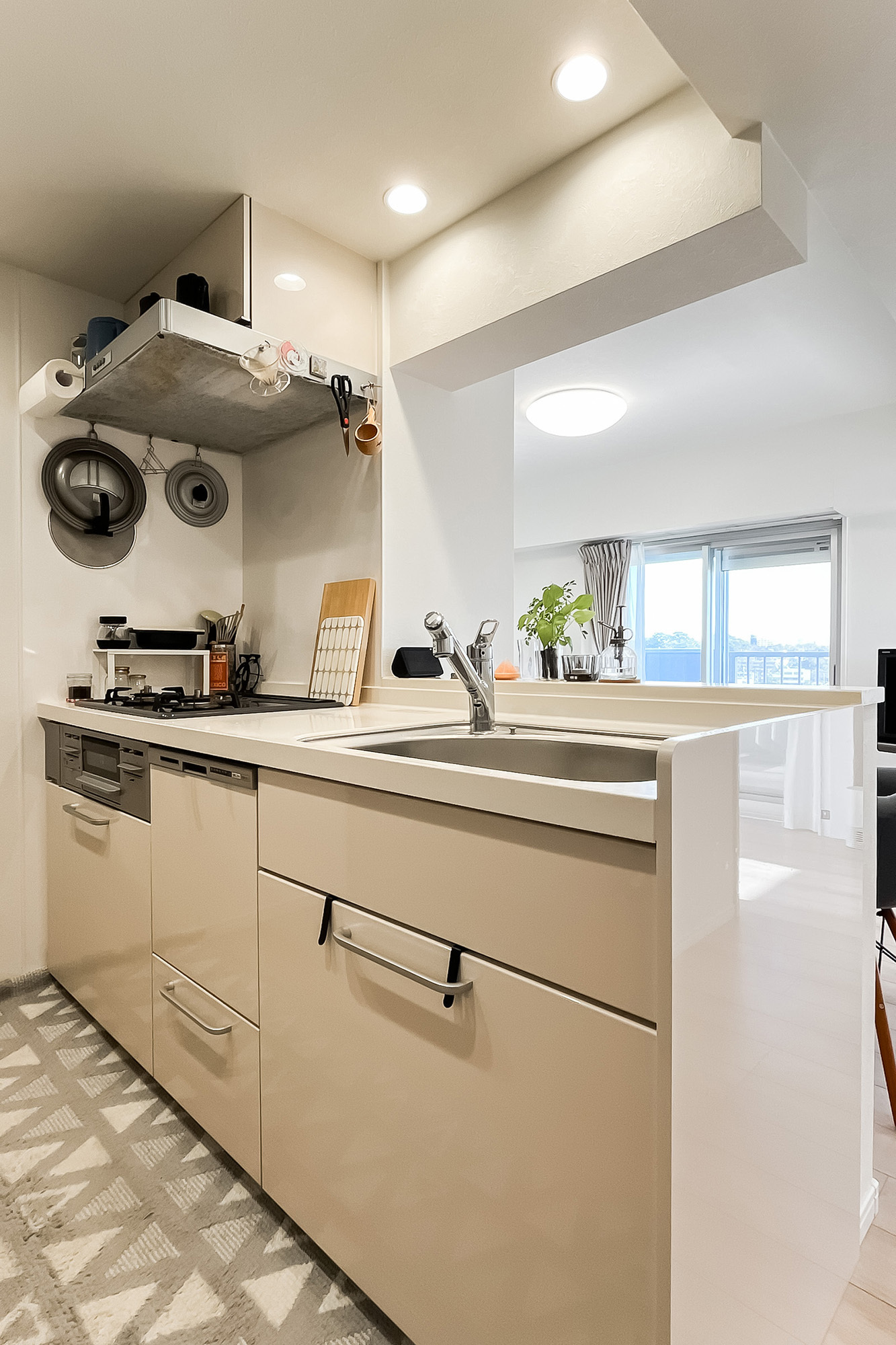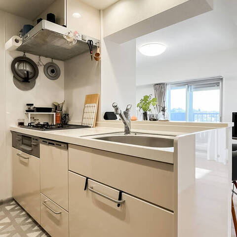 - 専有面積約55㎡の3LDK。対面式のシステムキッチンには食洗機が完備されています。