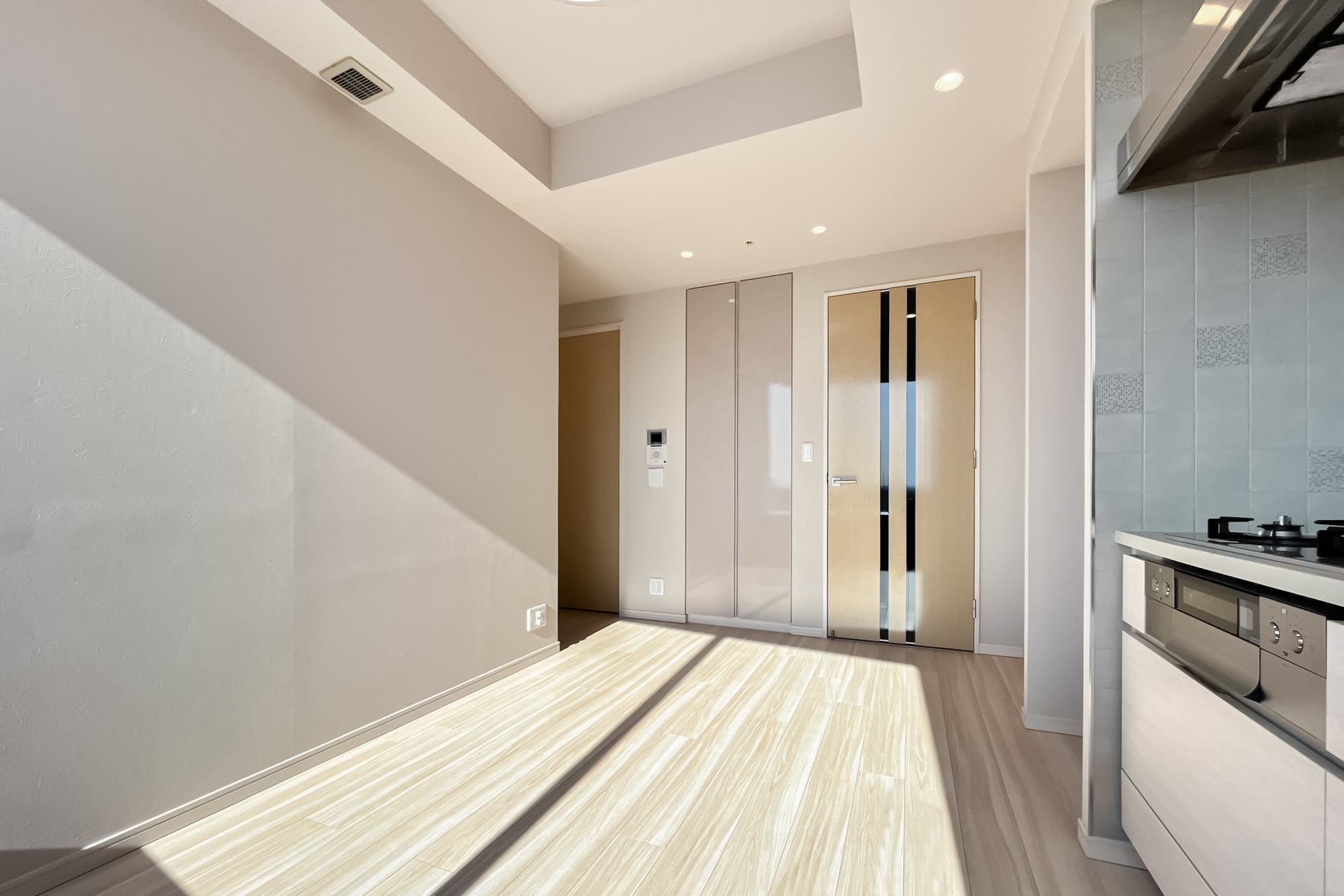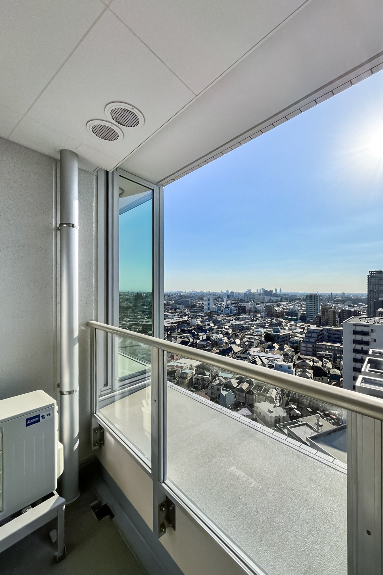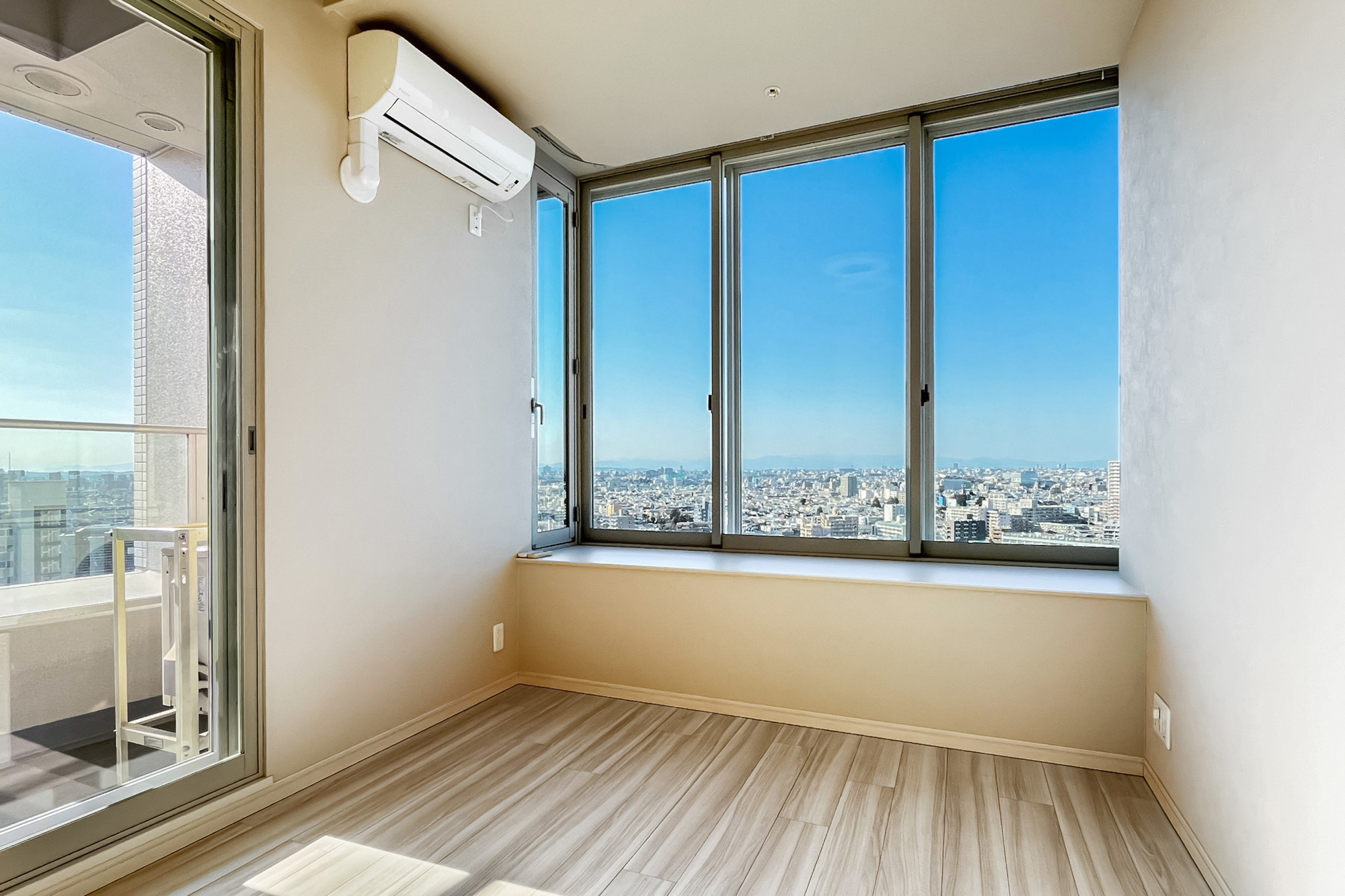 - ご紹介するのは17階に所在する角住戸です。バルコニーの先に広がるのは、遠くまで続く街並みと大きな空。洋室は二面採光で気持ちよくお過ごしいただけそうです◎