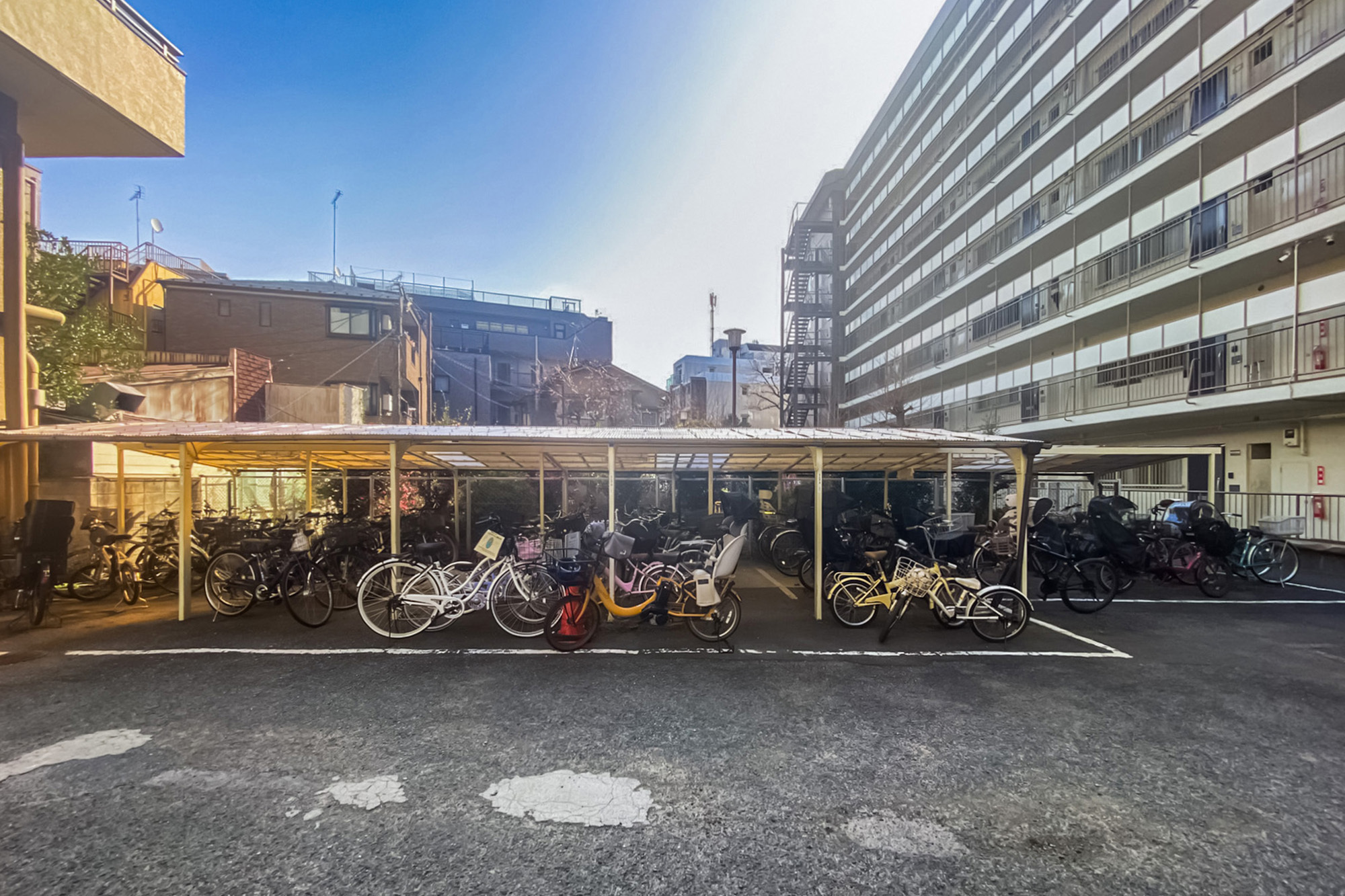 - 狛江通り沿いに建つ、1975年竣工の建物。総戸数は184戸と大規模で、スケールメリットで共益費が抑えられていますよ。管理費よりも修繕積立金に重きを置いた徴収バランスも好印象です。