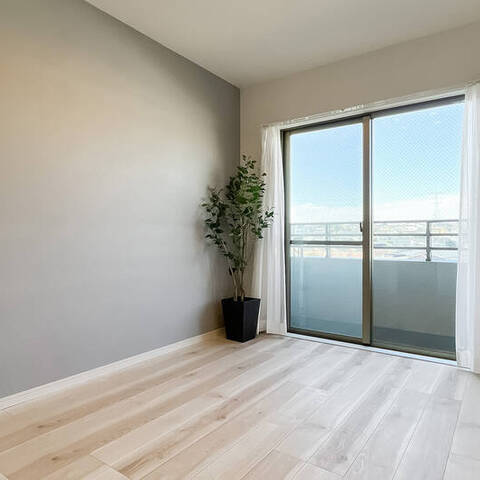 - 住戸の所在階は2階ですが、傾斜地に建っているためバルコニーからは抜けのある眺望をお楽しみいただけますよ。専有面積約71㎡を3LDKにした間取り。各居室だけでなく、キッチンスペースや浴室、廊下にも窓が備わっているのがうれしいところです。