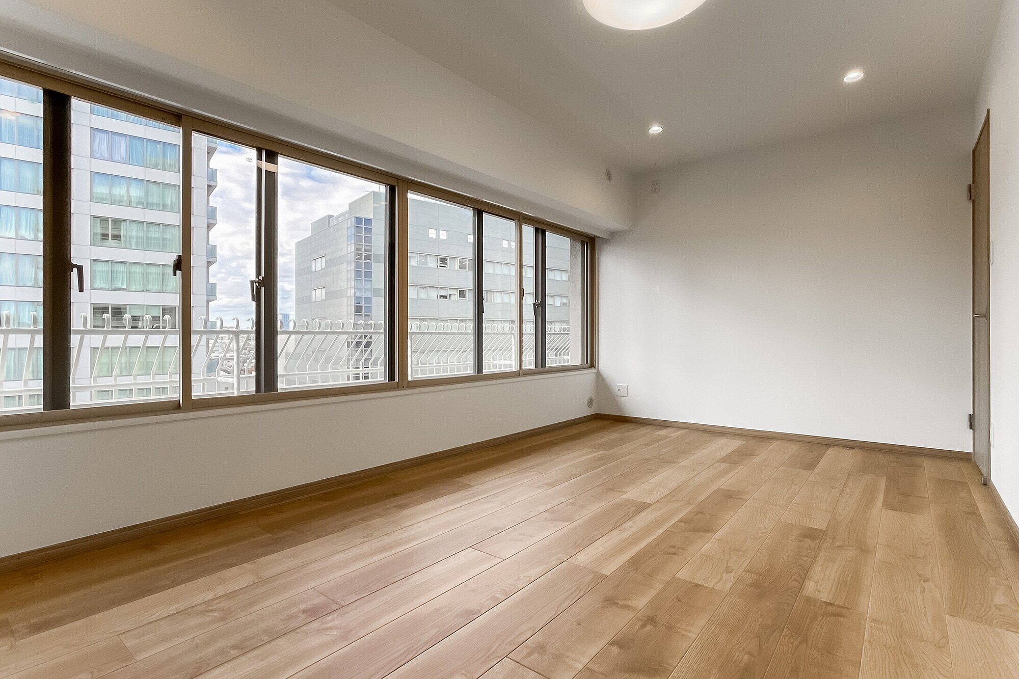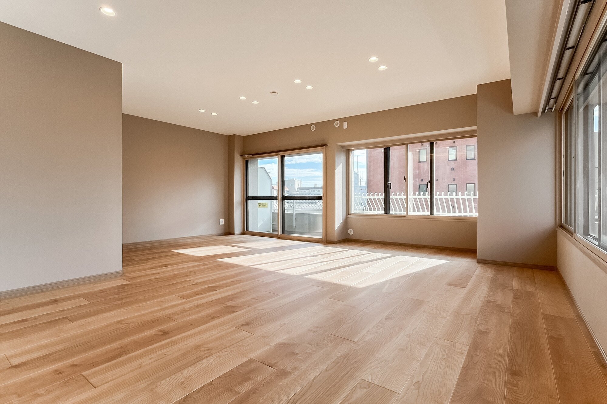 - ご紹介するのは6階に所在する三方角住戸。専有面積約104㎡を3LDKにした、各所ゆとりのある間取りです。LDKは約28帖! たっぷりの窓がさらなる開放感を与えてくれていますね。