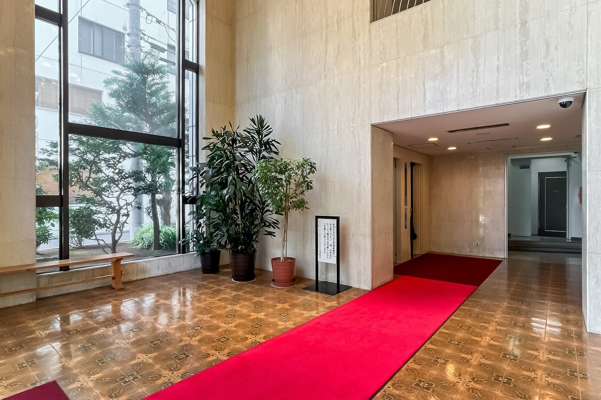 - 1974年竣工のヴィンテージマンション。1階にスーパーが入居しており、日々お世話になりそうです♪ 白くて大きなタイル貼りの外観で、エントランスは天井が高く、共用ロビーにはシャンデリアが♡ 共益費は一般的な相場に比べお高めに設定されています。