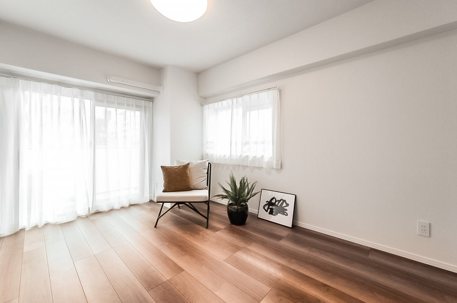 - 住戸が所在するのは3階。角部屋で窓が多く、風通しがよさそうです。各居室だけでなく、浴室にも窓が備わっているのが◎ 専有面積約68㎡を2LDKにした間取りで、洋室はそれぞれ6帖以上の広さを確保しています。約1.4帖のゆとりあるウォークインクローゼット(WIC)が設けられているのもうれしいポイントです。