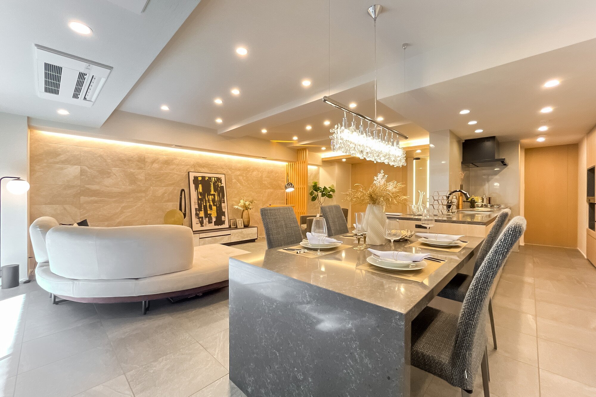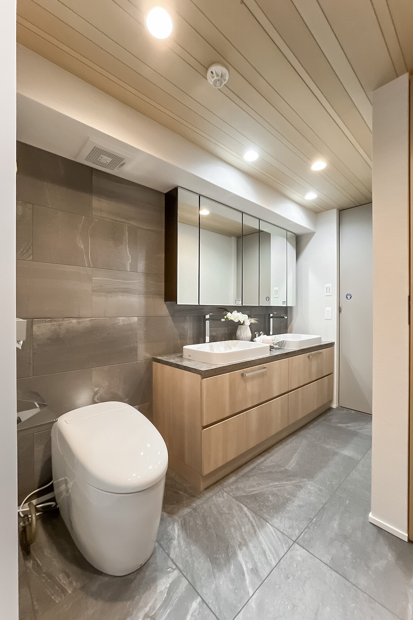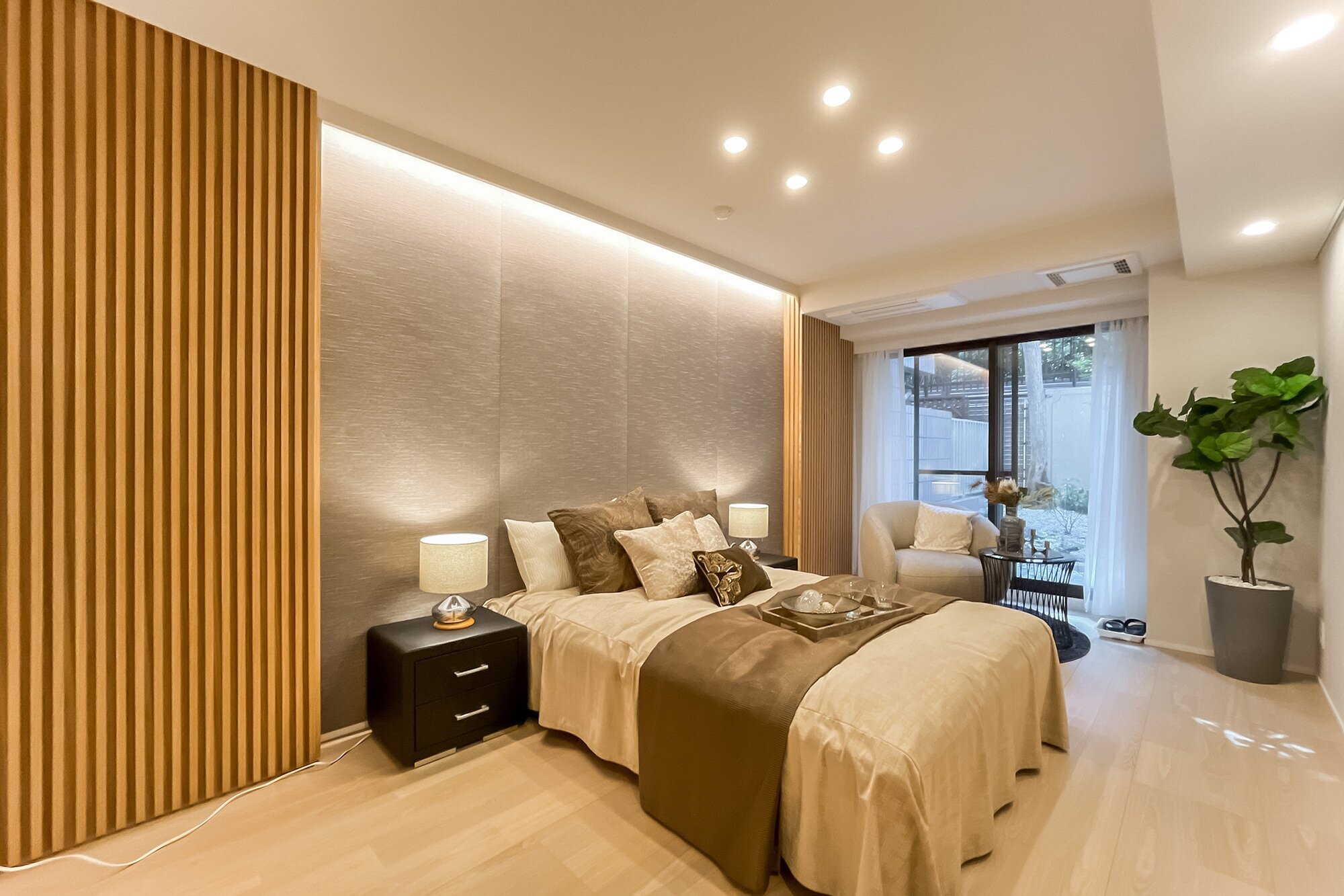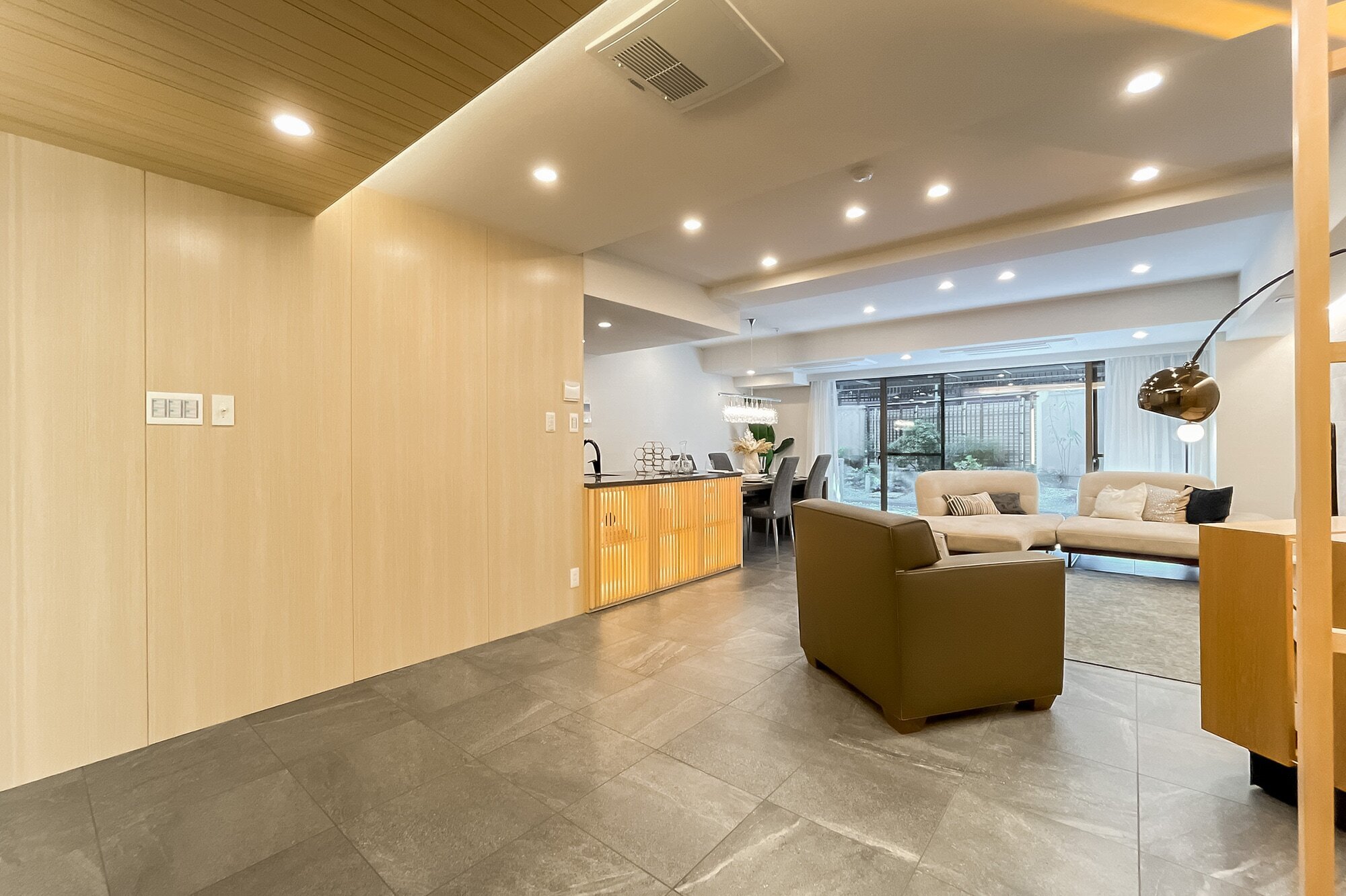 - 1階に所在する、トランクルーム専用使用権付きの住戸です。専有面積は約138㎡! LDKは約30.1帖、メインベッドルームは約10.2帖と広々しています。そのほか洗面室は2ボウル、充実した収納、玄関など各所にゆとりがあり、ゆったりと暮らしていただけそうですね。