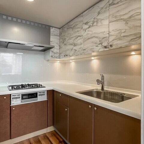 リフォーム内容:洗面化粧台水栓交換/温水洗浄便座新規交換/システムキッチン水栓交換/壁・天井クロス新規貼替/給湯器新規交換(追いだき機能付)/照明器具新規設置