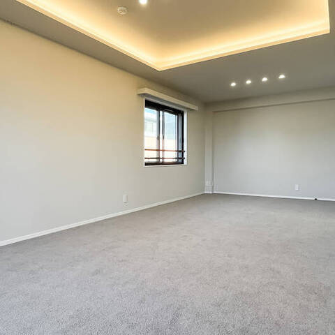 - ご紹介するのは3階に所在する角住戸。南西側に備わったバルコニーからは空を広く仰げ、前方には線路が通っています。専有面積約90㎡を3LDKにした間取りで、LDKは約21.7帖と広々! 各洋室も6帖以上の広さを確保していますよ。
