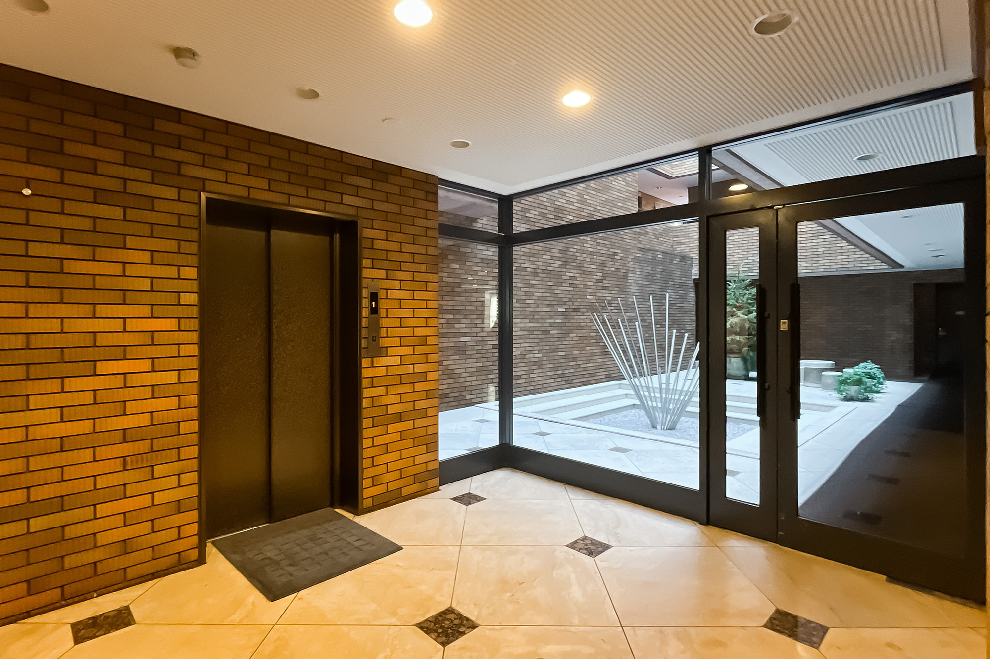 - 1985年竣工で、新耐震基準に適合しています。ホテルのようにクラシカルなエントランスホールには暖炉が設置されており、落ち着きのある空間が広がっていますよ。
