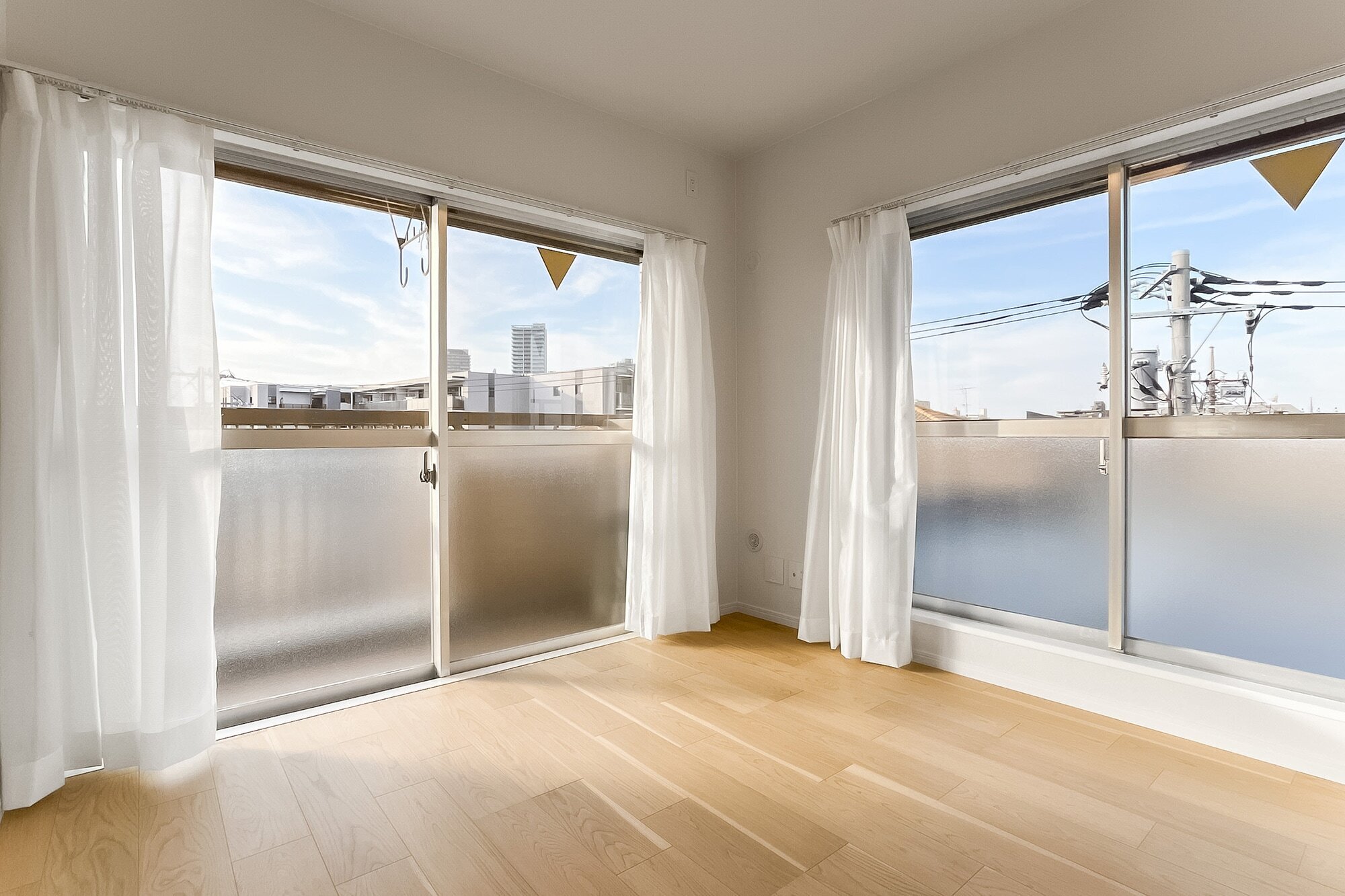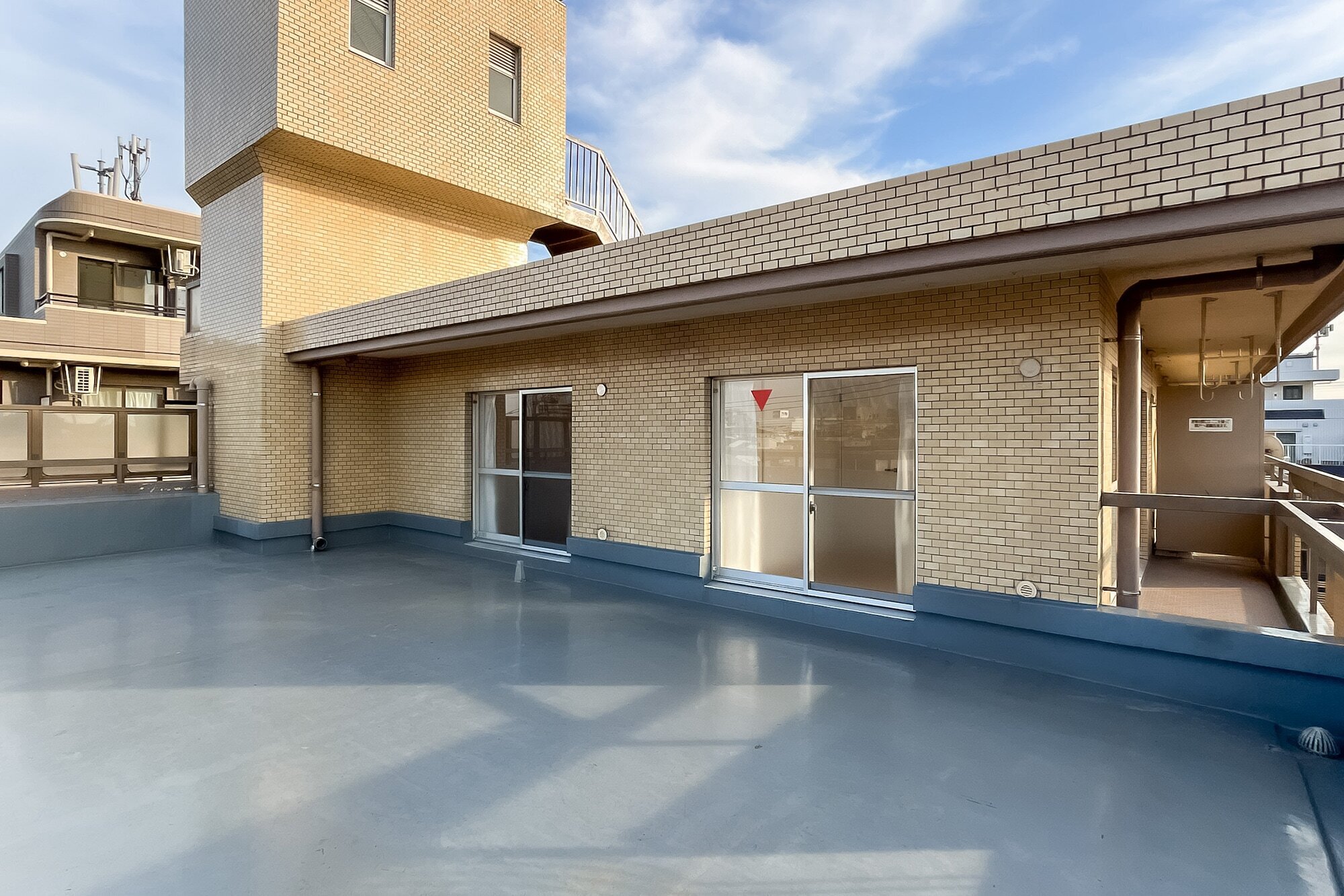 - ご紹介するのは、最上階4階に所在する角住戸。北側には約47㎡の広々としたルーフバルコニーが備わり、この空間でどのように過ごそうかワクワクしますね♪