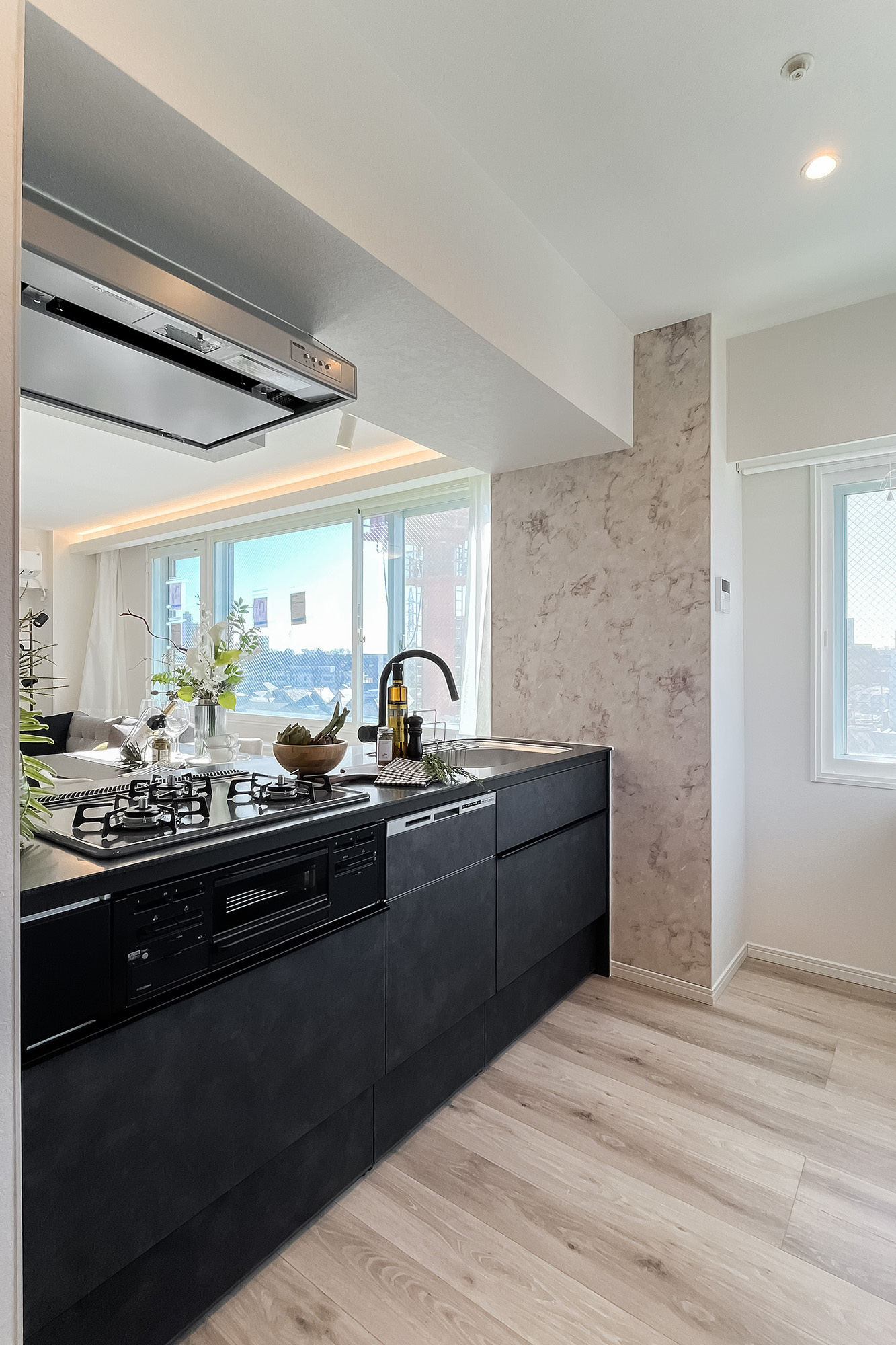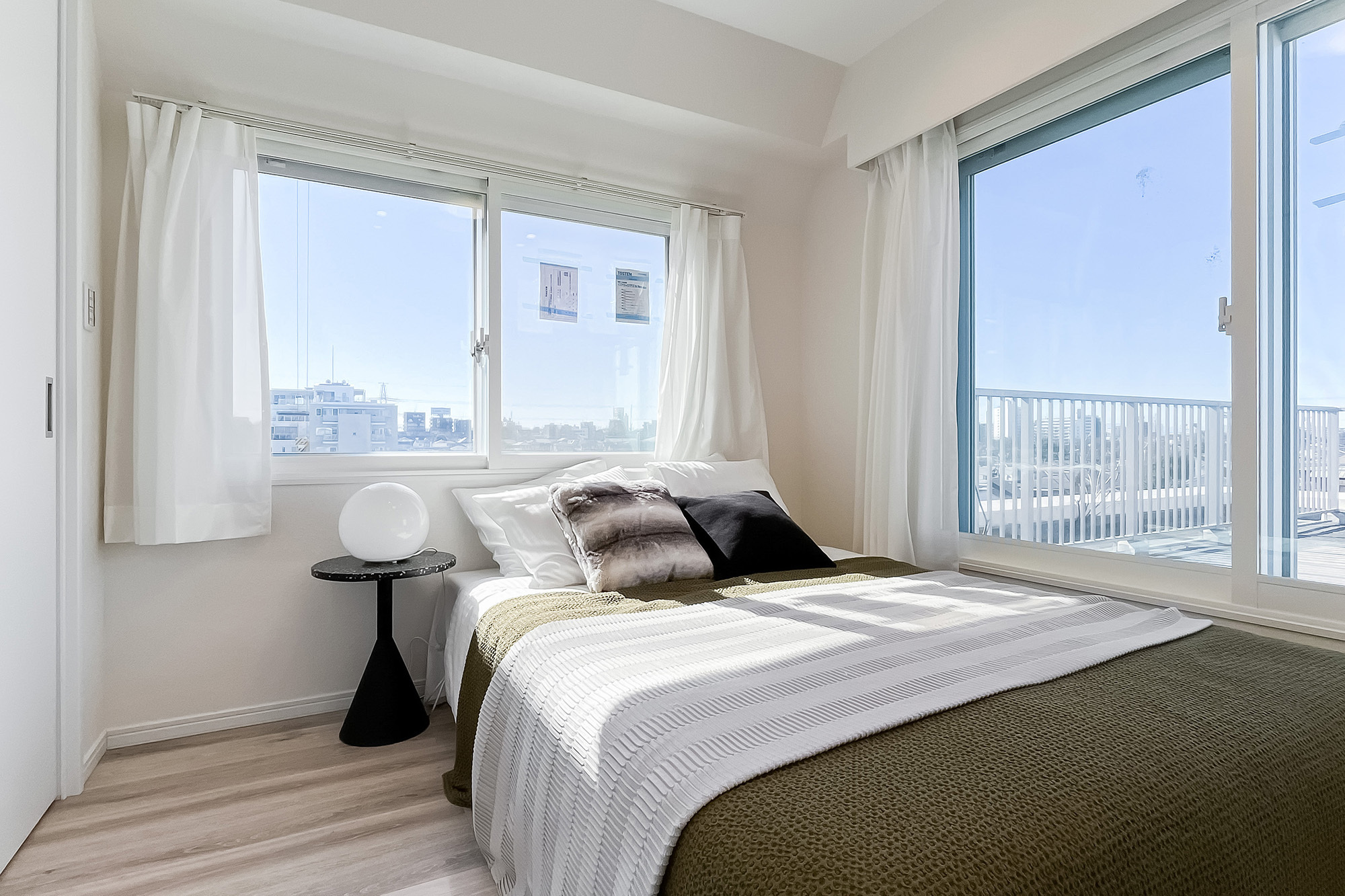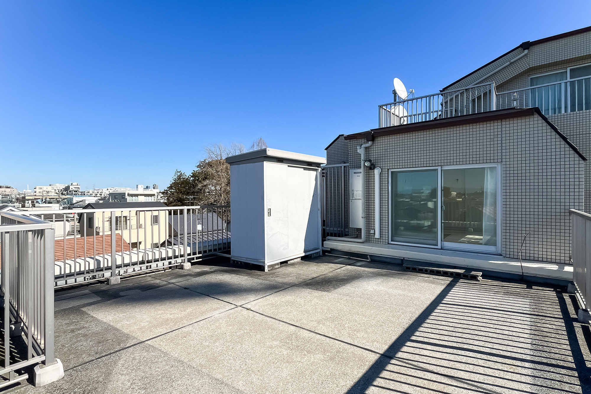 - ご紹介するのは5階に所在する三方角住戸。窓がたっぷり備わっているのがポイントです。ルーフバルコニーは約34㎡と広々! この空間でどうやって楽しもうか、ワクワクが止まりません♪