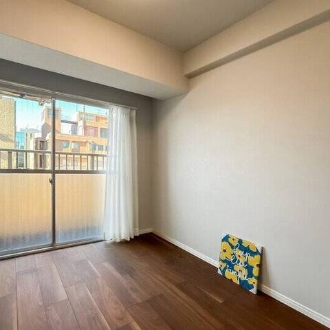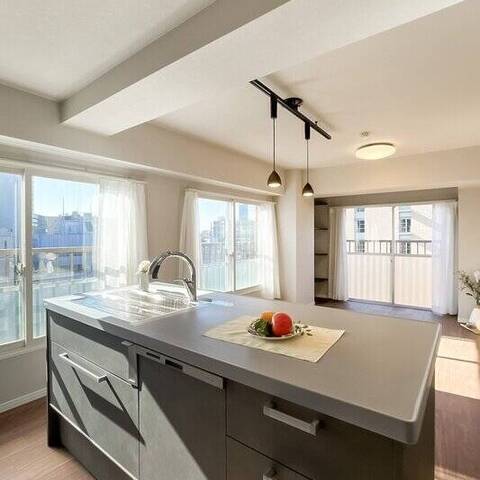 - 住戸は最上階12階の角に所在します。バルコニーからは「慶應義塾大学」敷地内のグリーンを望み、空を広く仰げそう◎ 桜田通りとは反対側に位置し、インナーサッシも備わっていますので、効果のほどは内見時にお確かめくださいね。専有面積約45㎡を1LDKにした間取りで、LDKは約14.2帖とゆとりのある広さですよ。