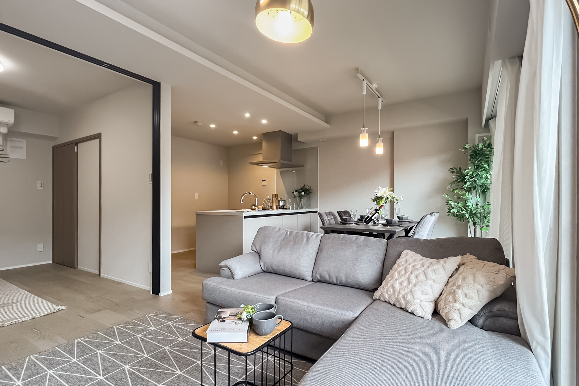 リノベーション内容:キッチン新規交換(食洗機・タッチレス水栓付)/ユニットバス新規交換(浴室換気乾燥暖房機付)/洗面化粧台交換/トイレ設備交換(温水洗浄機能付便座)/フローリング貼替/壁天井クロス張替/建具交換 他