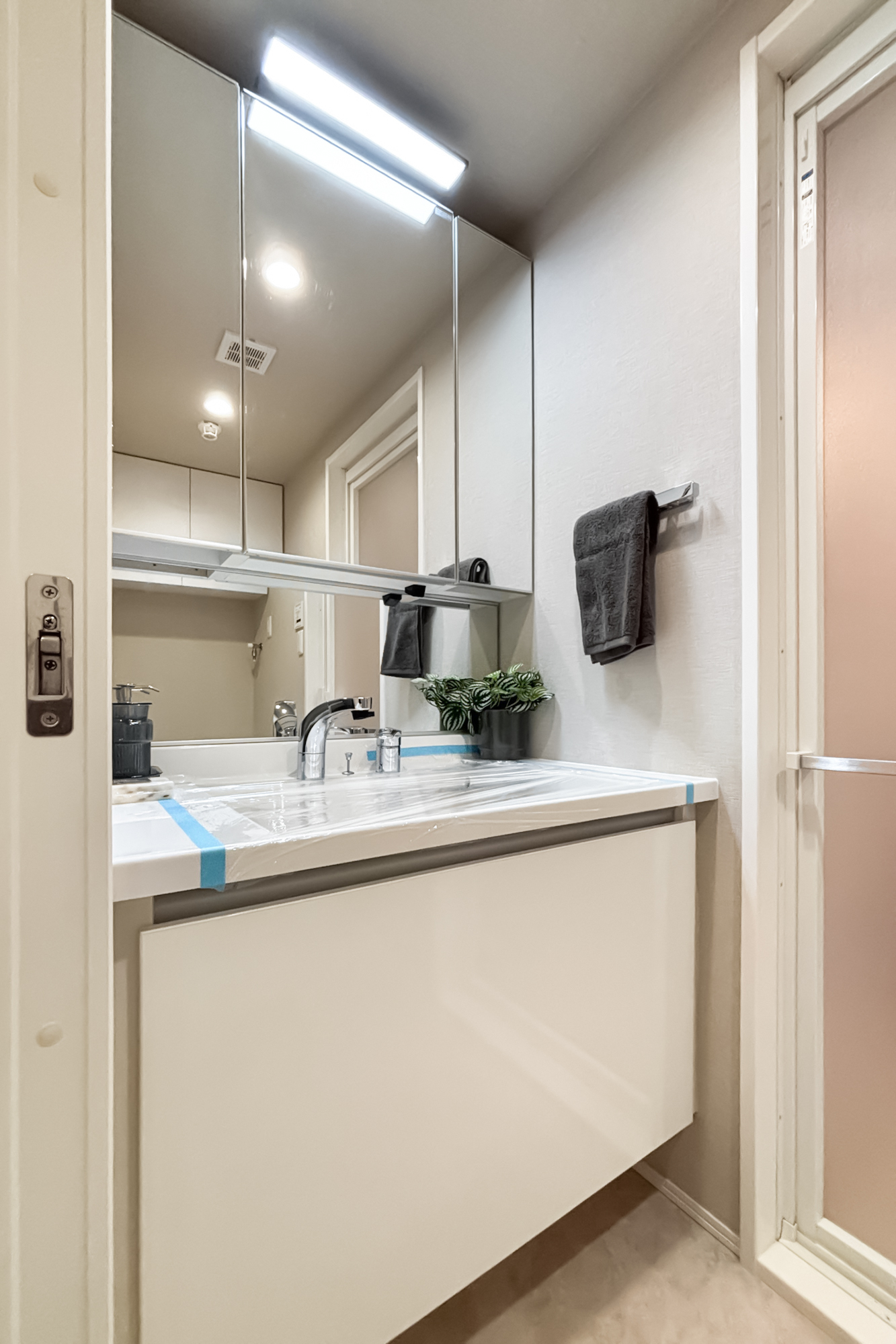 リフォーム内容:浴室水栓交換/浴室シャワーヘッド、シャワーホース、シャワーホースフック交換/クロス張替/巾木交換/建具ハンドル交換他