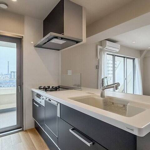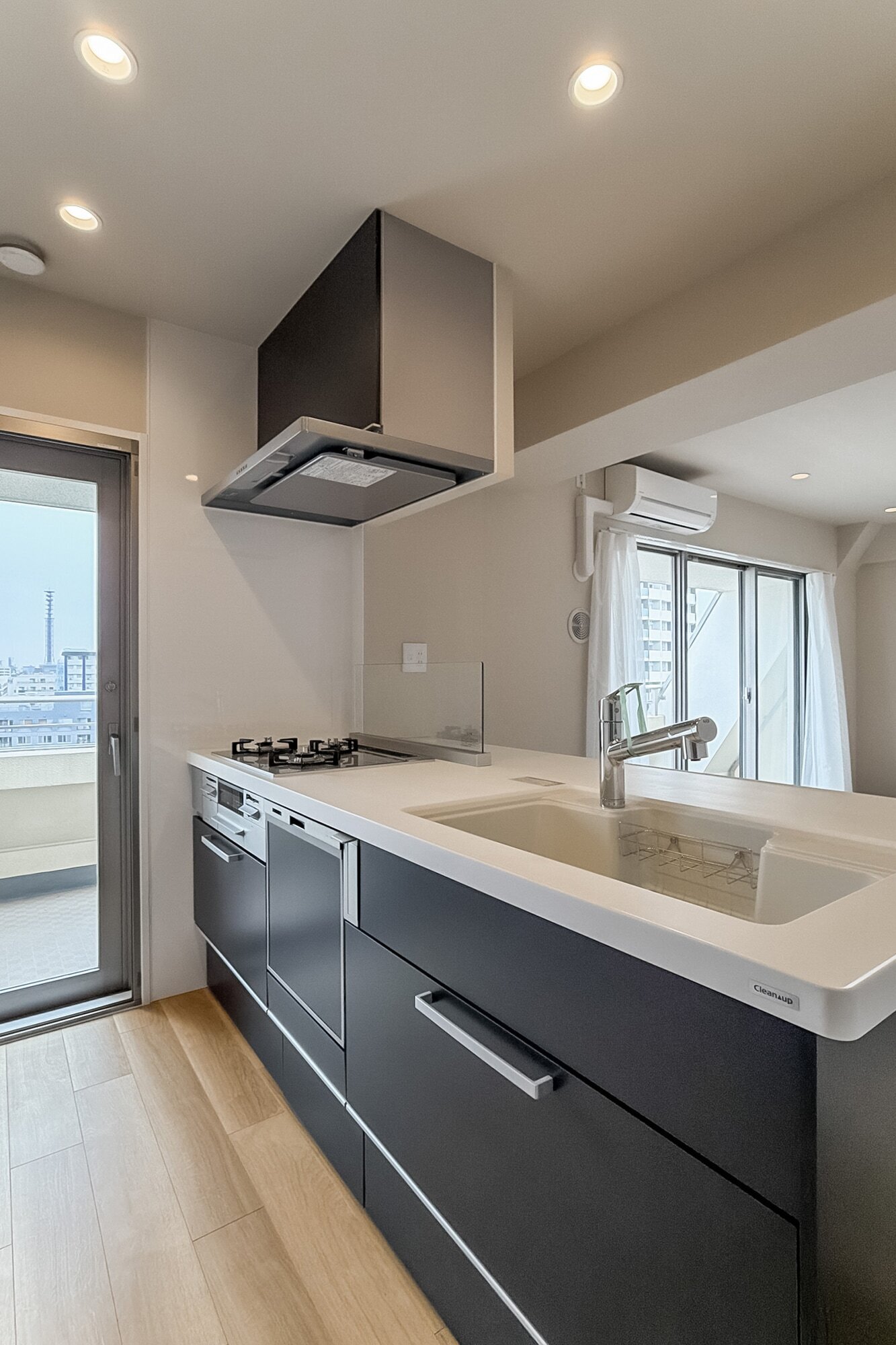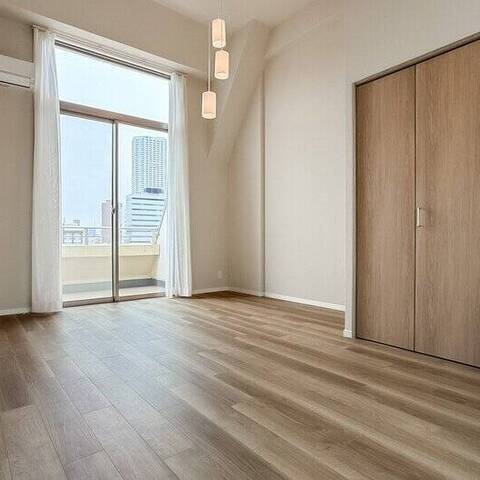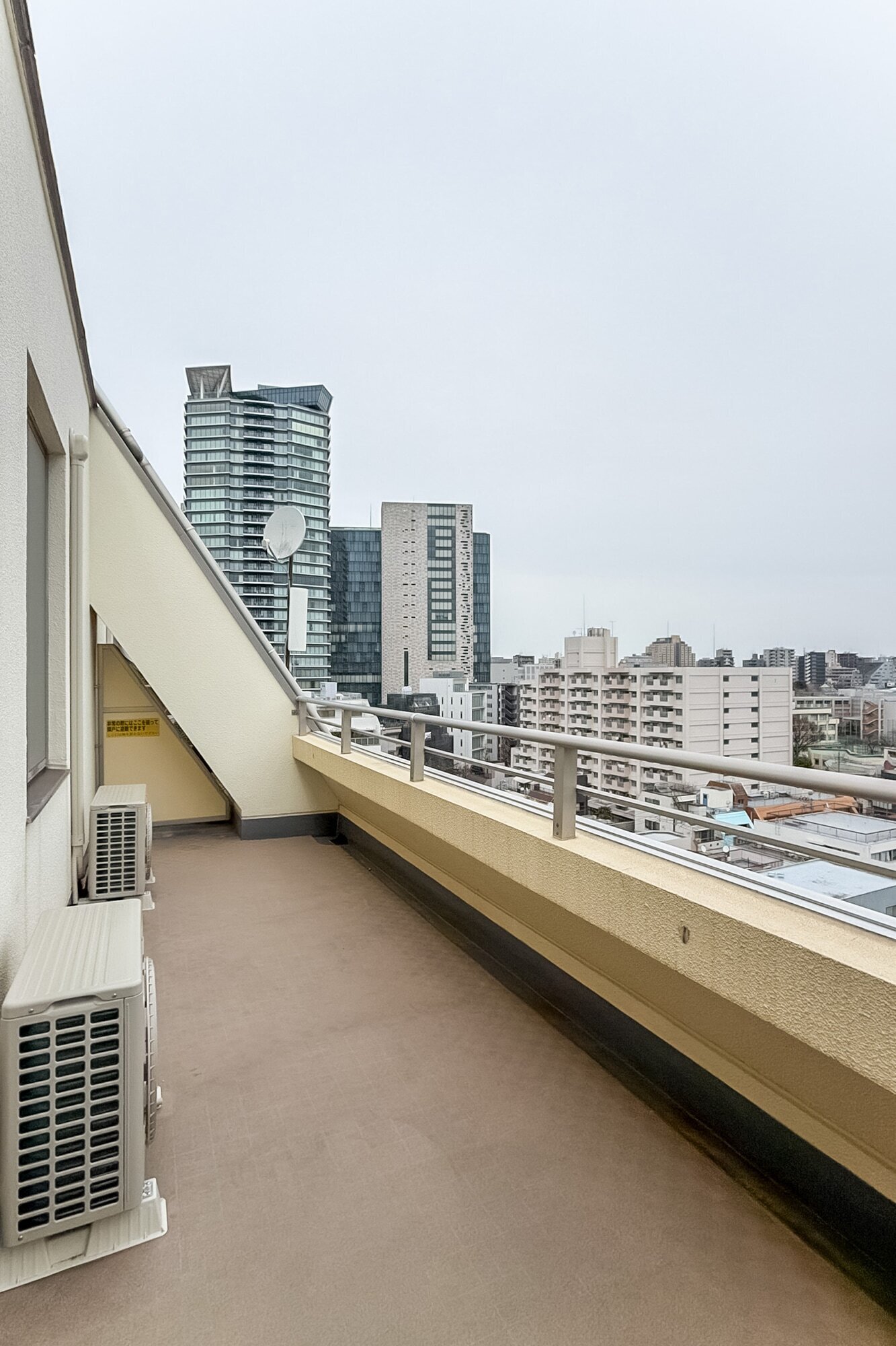 - 9階と最上階10階に所在するメゾネットタイプの住戸。バルコニーからは遠くまで続く街並みと大きな空を望みます。