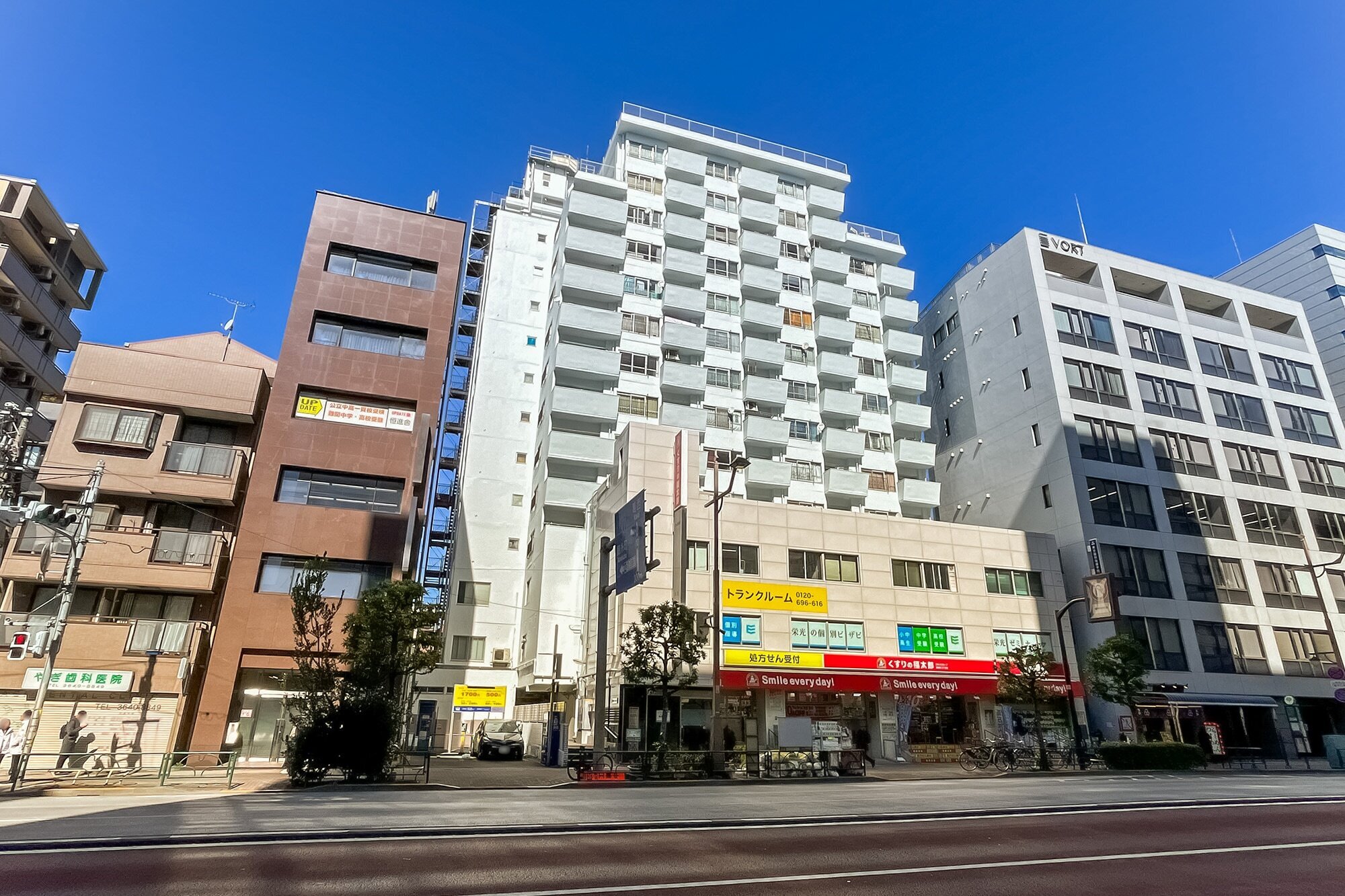 - 1973年竣工の建物で、低層階にはドラッグストアや塾などのテナントが入っています。直近の大規模修繕工事は2025年に行われています。