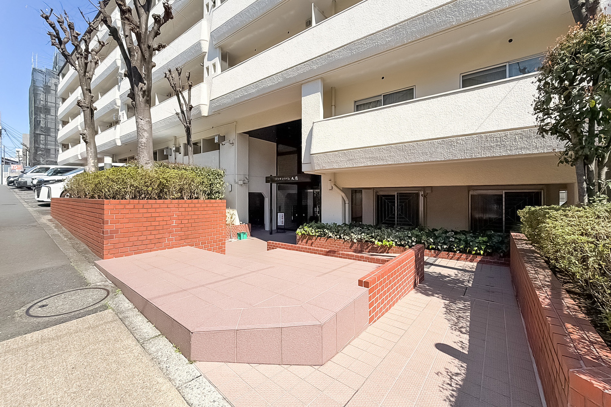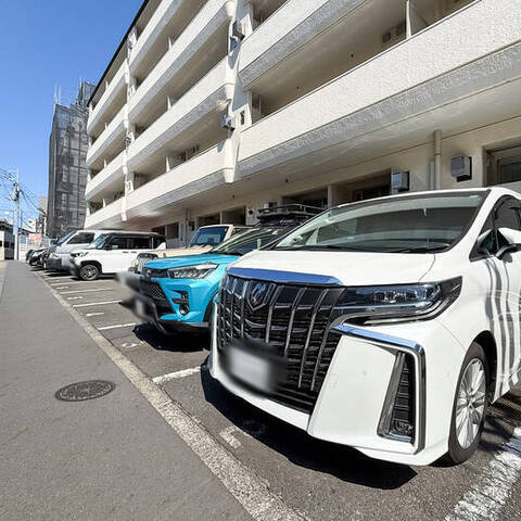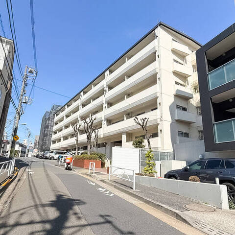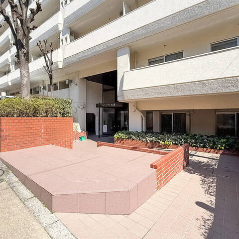 - 首都高と山手通りに挟まれたエリアに建つ、1977年竣工のマンション。築年数はそれなりに経過していますが、外観や共用部はきれいに保たれている印象です。植栽が出迎える上品なエントランスアプローチや、豪快な吹き抜け構造の共用ロビーなど魅力たっぷり。