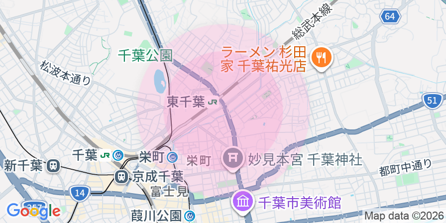 - JR総武本線 「東千葉」駅 徒歩2分千葉都市モノレール1号線 「栄町」駅 徒歩9分千葉都市モノレール2号線 「千葉公園」駅 徒歩9分京成千葉線 「京成千葉」駅 徒歩15分千葉都市モノレール1号線 「葭川公園」駅 徒歩15分