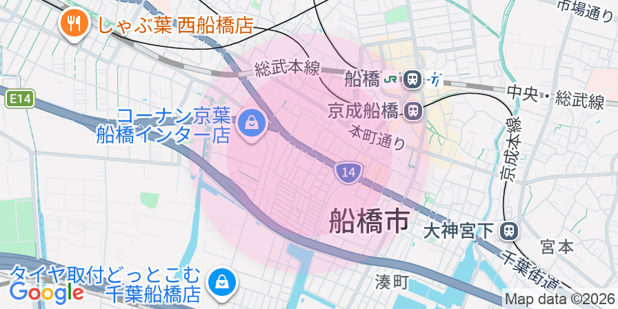 - 京成本線 「京成船橋」駅 徒歩12分JR総武線・JR総武線快速・JR総武本線・東武野田線 「船橋」駅 徒歩13分京成本線 「海神」駅 徒歩16分東葉高速線 「東海神」駅 徒歩16分京成本線 「大神宮下」駅 徒歩18分