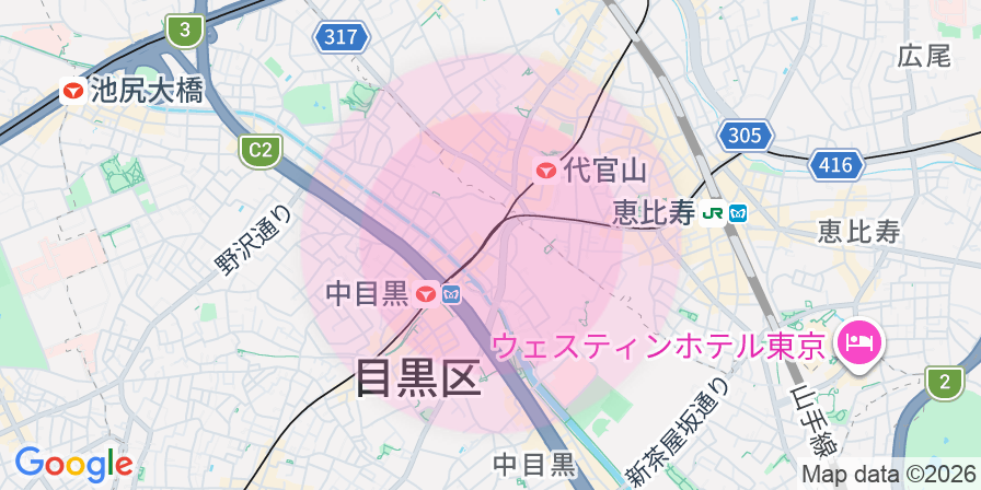 - 東急東横線・東京メトロ日比谷線 「中目黒」駅 徒歩4分東急東横線 「代官山」駅 徒歩6分JR山手線・JR埼京線・JR湘南新宿ライン高海・JR湘南新宿ライン宇須・東京メトロ日比谷線・相鉄・JR直通線 「恵比寿」駅 徒歩11分東急東横線 「祐天寺」駅 徒歩19分京王井の頭線 「神泉」駅 徒歩23分